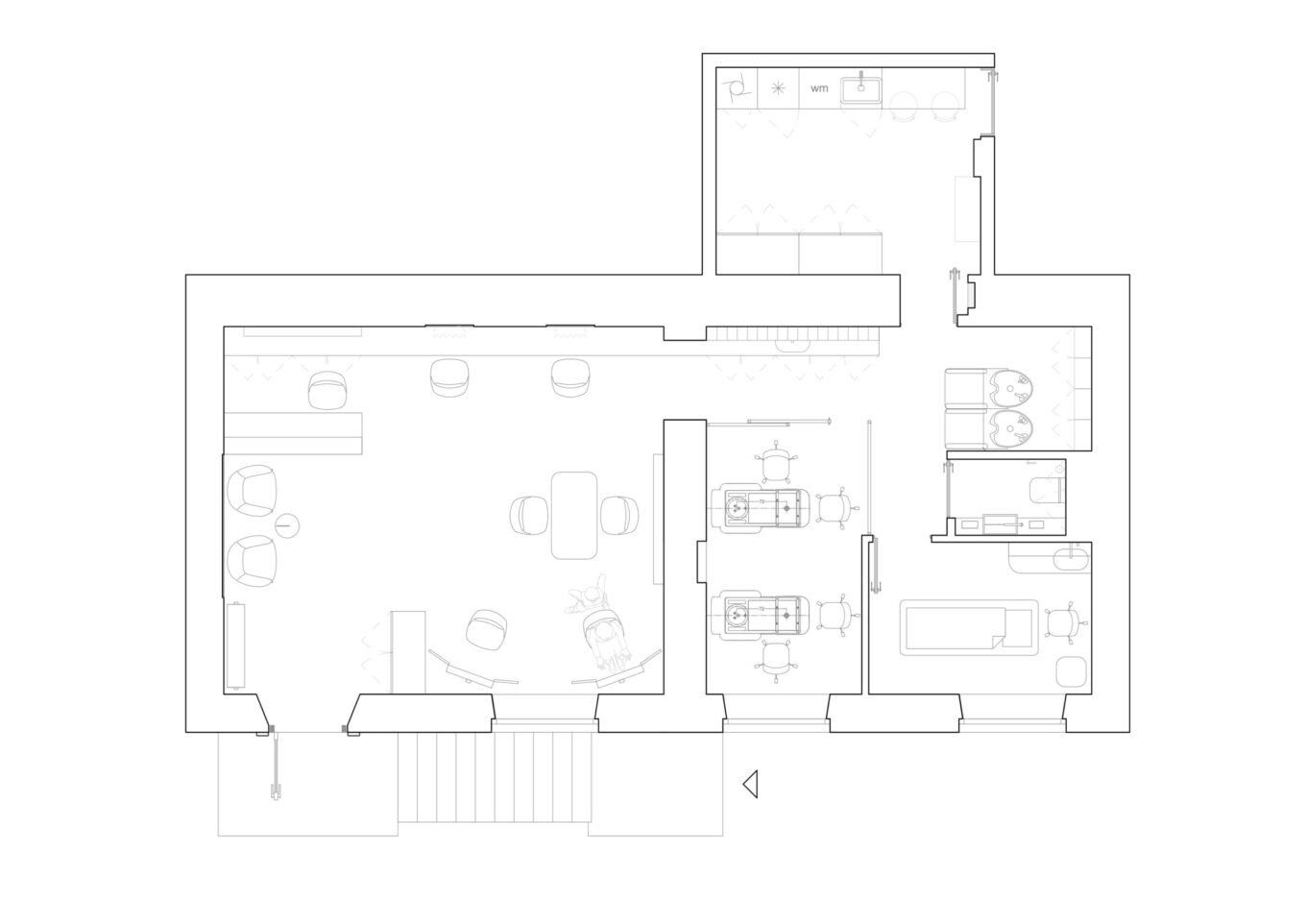 Усі меблі в салоні, окрім крісел, були виконані за авторськими кресленнями. На думку дизайнерів, лише індивідуально розроблені меблі могли максимально гармонійно вписатись у задуману ними візуальну геометрію проєкту. Фото: Євген Авраменко