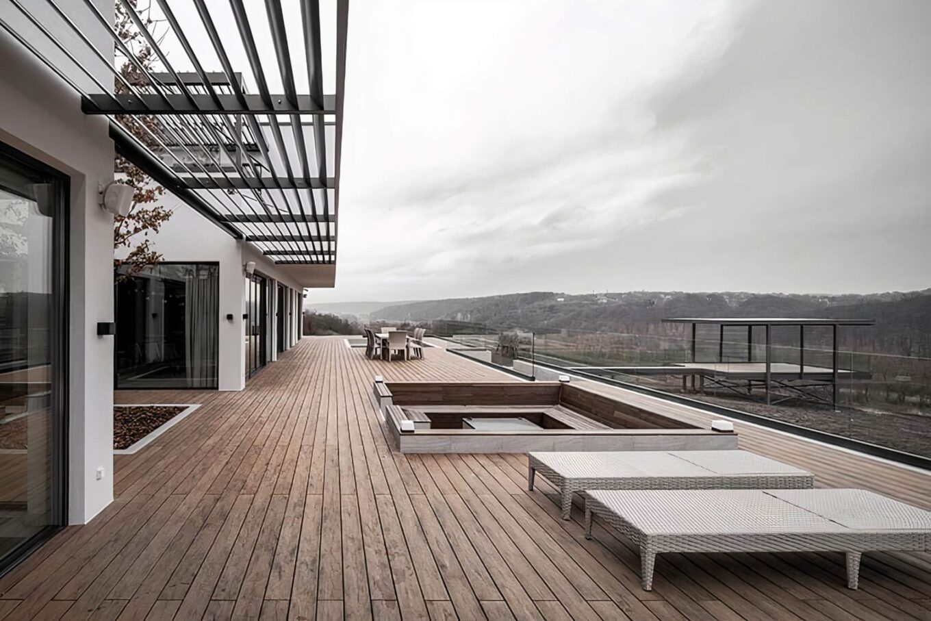 «Мы также делаем просчет нагрузок, чертежи и всю необходимую документацию для субподрядчиков, благодаря чему даем расширенную гарантию на ветроустойчивость системы, когда закрываем террасы у моря или на высоте», — говорит Марина. Если на момент установки уже проложена гидроизоляция, у компании есть решения, как закрепить систему таким образом, чтобы она выдерживала порывы ветра до 120 км / ч. К слову, впервые перголу M-Ocean применили в клубном отеле M1 в Одессе, реализованном в 2015 г. по проекту архитектора Жанны Киселевой. Модель здесь затеняет террасу на крыше.