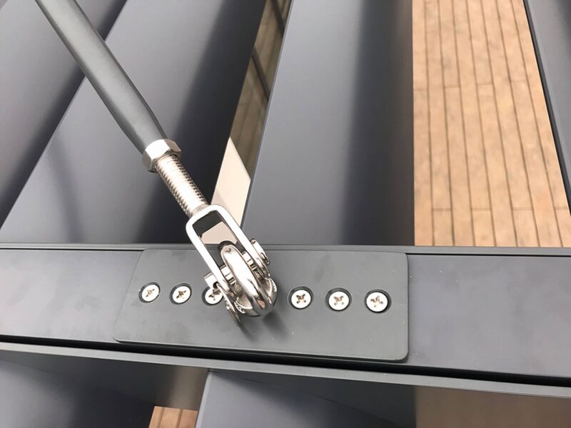 Несущая стационарная конструкция выполнена из прочного экструдированного алюминия. При этом применять ее можно независимо от угла расположения поверхности, на которую она устанавливается. Ламели могут быть поворотными или же фиксируются специальными пластиковыми держателями, устойчивыми к ультрафиолету. При этом любые климатические изменения ей нипочем.