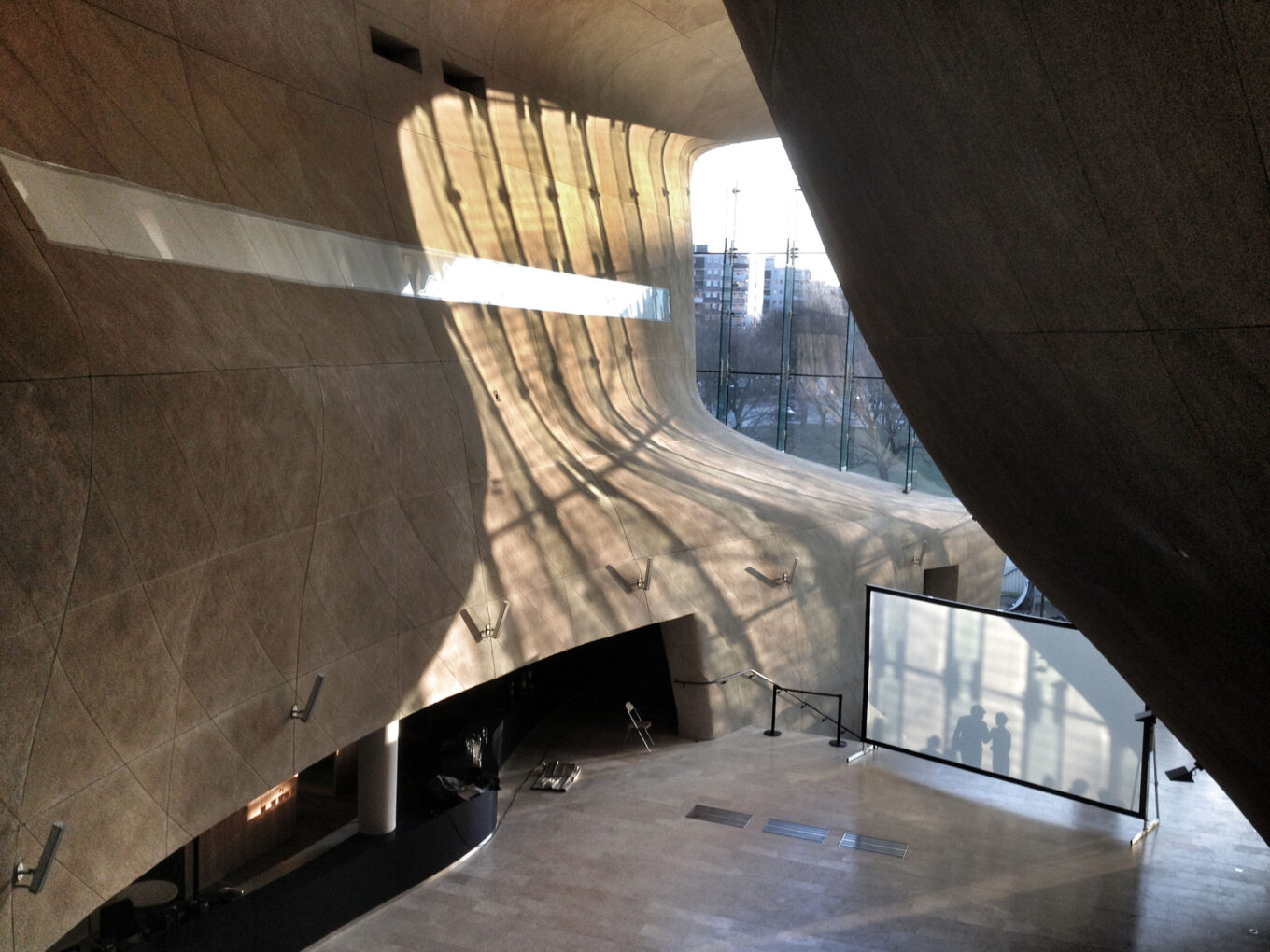 Органическая архитектура внутренних пространств Музея истории польских евреев в Варшаве — отсылка к библейской истории о переходе еврейского народа через Чермное море.