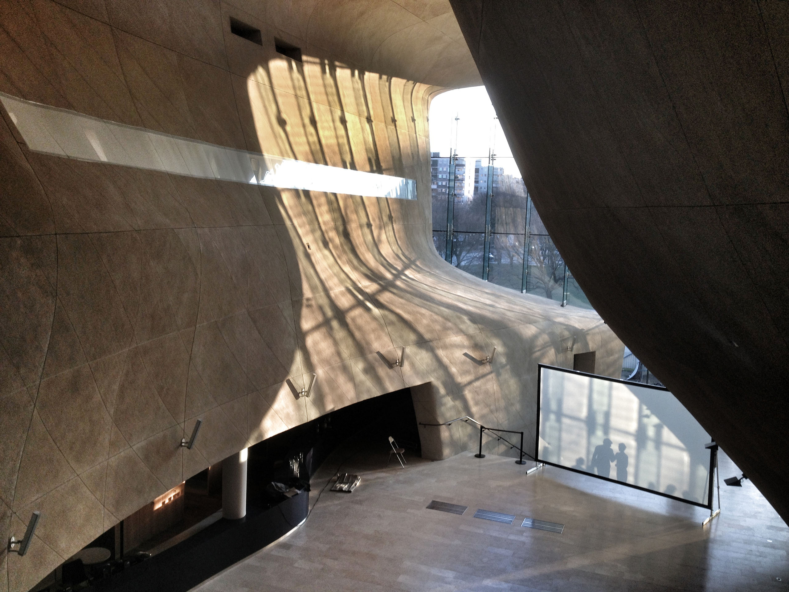 Органическая архитектура внутренних пространств Музея истории польских евреев в Варшаве — отсылка к библейской истории о переходе еврейского народа через Чермное море.