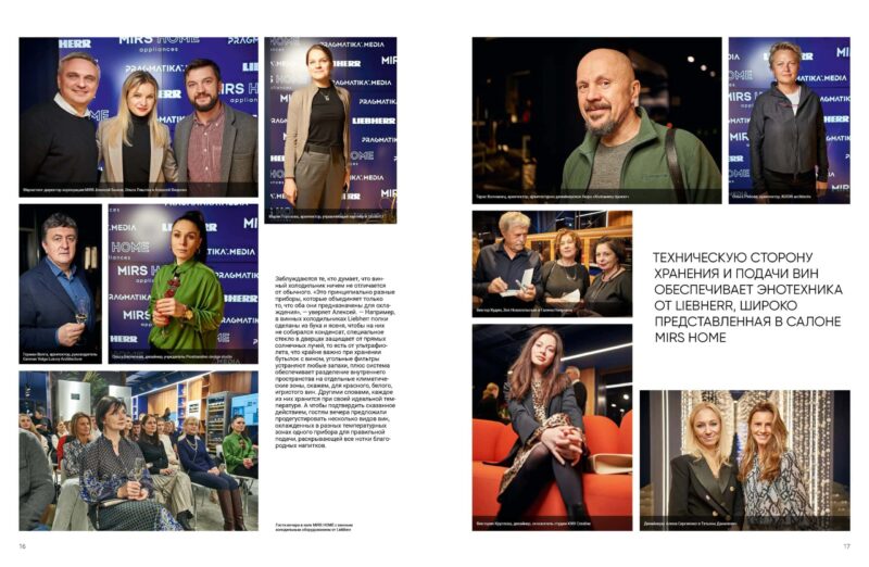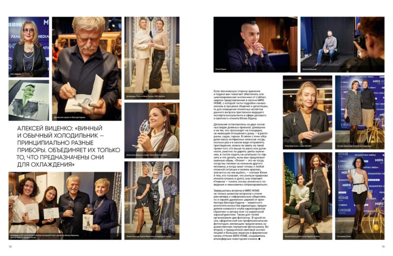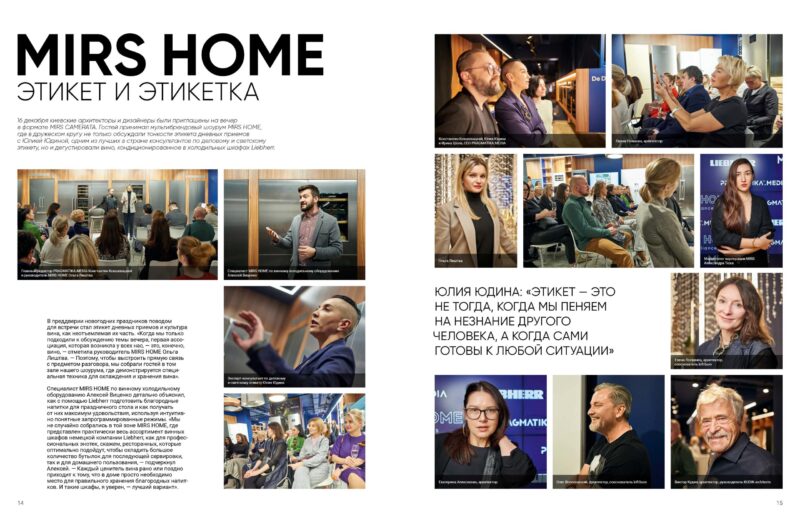 Напередодні новорічних свят приводом для зустрічі став етикет денних прийомів і культура вина як невід’ємна їх частина. «Коли ми лише підходили до обговорення теми вечора, перша асоціація, яка виникла у всіх нас, — це, звісно, вино, — наголосила керівник MIRS HOME Ольга Лиштва. — Тому, щоб побудувати прямий зв’язок із предметом розмови, ми зібрали гостей у тому залі нашого шоуруму, де демонструється спеціальна техніка для охолодження та зберігання вина».