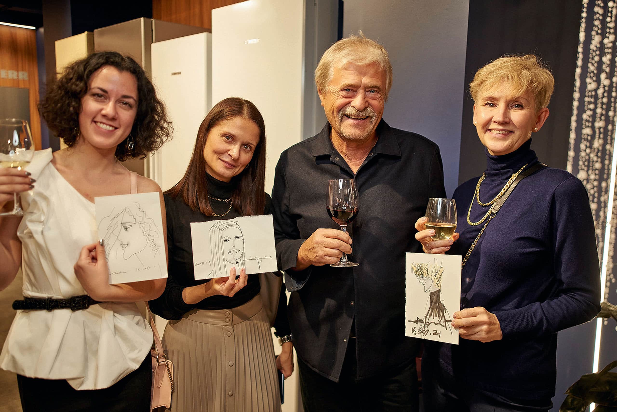 Завершилася зустріч у MIRS HOME не лише шквалом питань до спікерів вечора та неформальним спілкуванням, а й серією дружніх шаржів від архітектора Віктора Кудіна — відомого апологета мистецтва карикатури, голови київського клубу карикатуристів «Архігум» і автора книг з української карикатуристики.