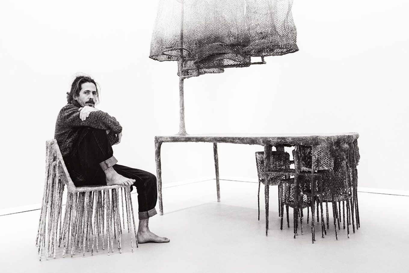 Коллекция Cumulus. Как следует из концепции Карбонелла – облако над столом – это идеи и обязанности, которые преследуют каждого из нас, а стул – иллюстрирует давление со стороны общества, семьи, бизнеса. Инсталляция демонстрировалась в миланском дворце Багатти-Вальсекки в рамках Salone del mobile в 2014 году. Источник изображения: rossanaorlandi.com