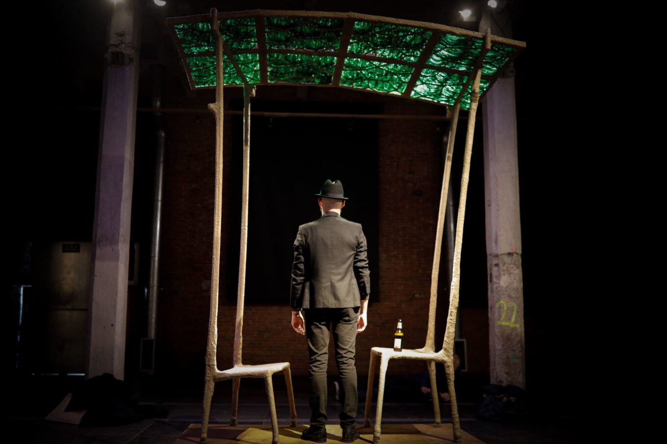 Если вы представили себе Карбонелла едва ли не социопатом, отвергающим важность общения и коммуникаций, то спешим успокоить – это не так. На прошлогоднем Dutch Design Week Карбонелл представил уличную скульптуру «Социальный диван», а к Мадридскому фестивалю дизайна, который проходит в эти дни, Начо подготовил инсталляцию, призванную служить местом для приятных встреч. Установка El Patio приглашает посидеть с бокалом пива на длинноногих стульях, чьи высокие спинки поддерживают изумрудную крышу, составленную из пивных бутылок.