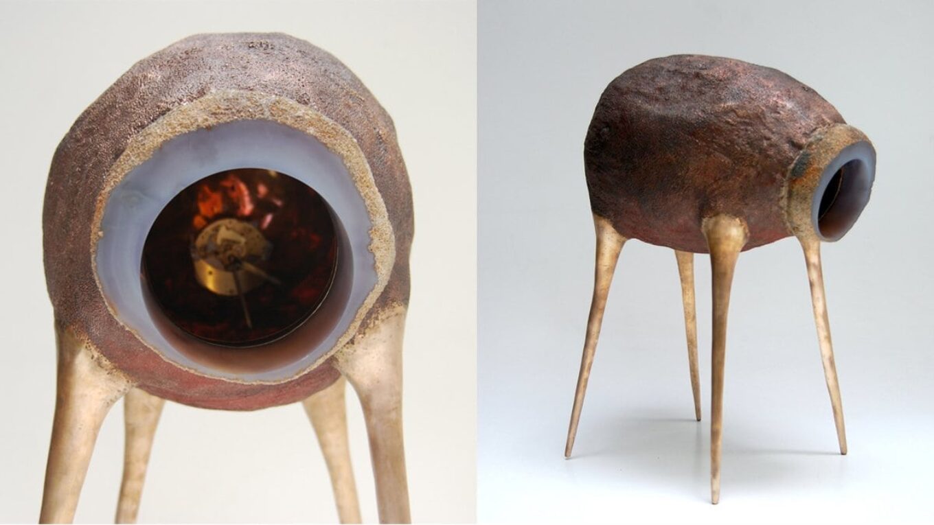 «Время – это сокровище». Начо создал интерьерные часы из срезов синего агата найденного в ювелирном магазине. Там фрагменты агатовых жеод использовали в оформлении витрин. Карбонелл решил восстановить справедливость и дал возможность агатовым осколкам стать часами. Источник изображения: rossanaorlandi.com