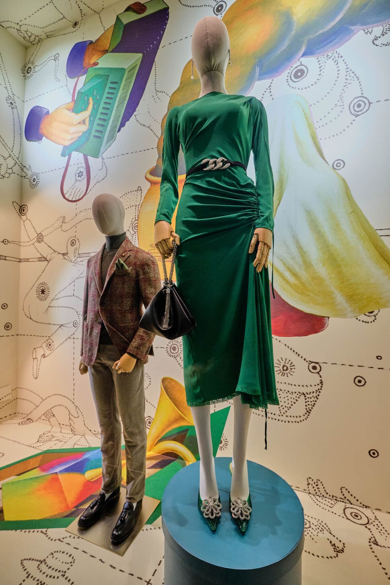 Фрагменти сценографії вітрин ЦУМ Київ, створених у колаборації з українським художником Володимиром Манжосом. Артсезон «Осінь-2021»