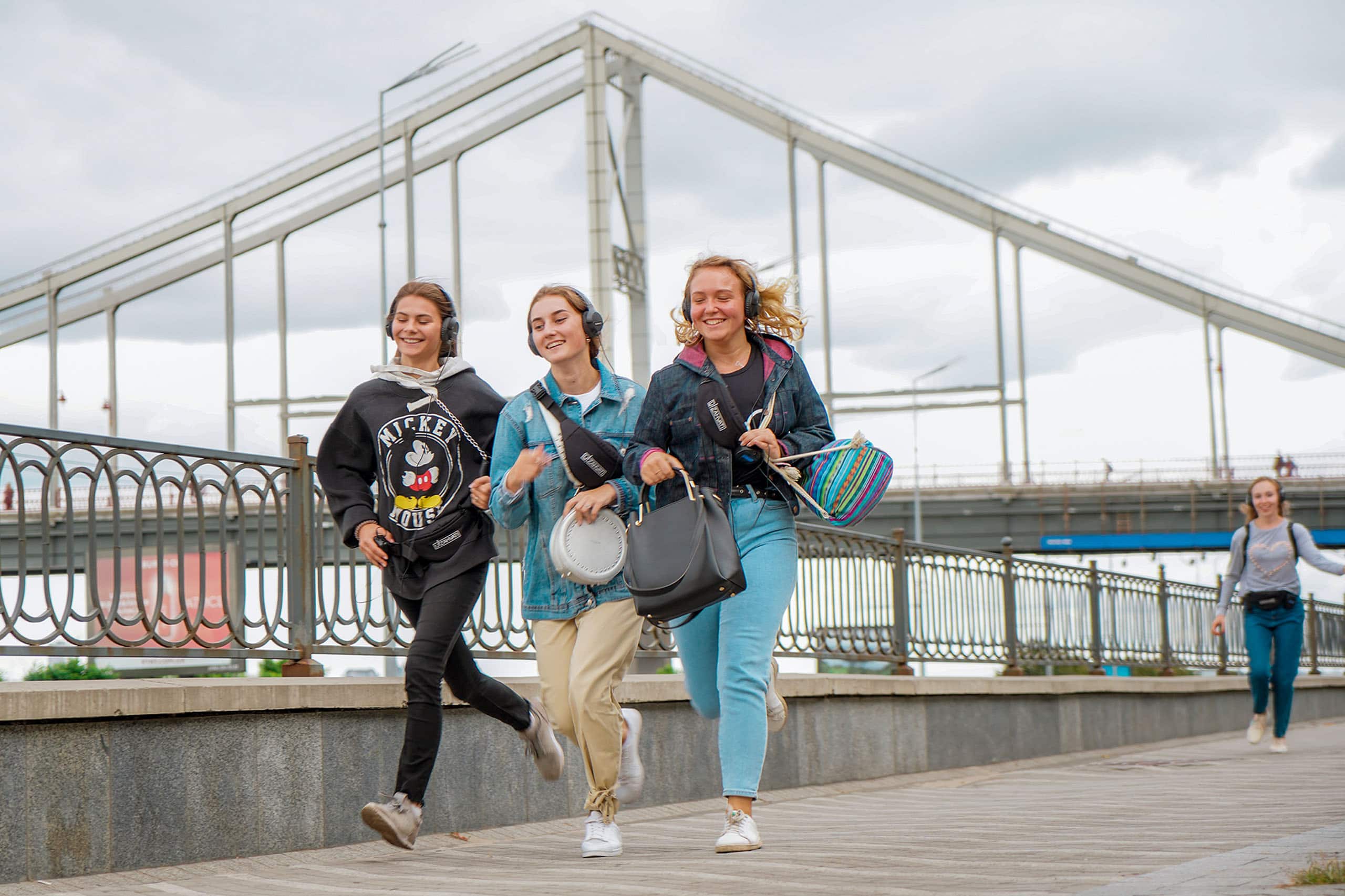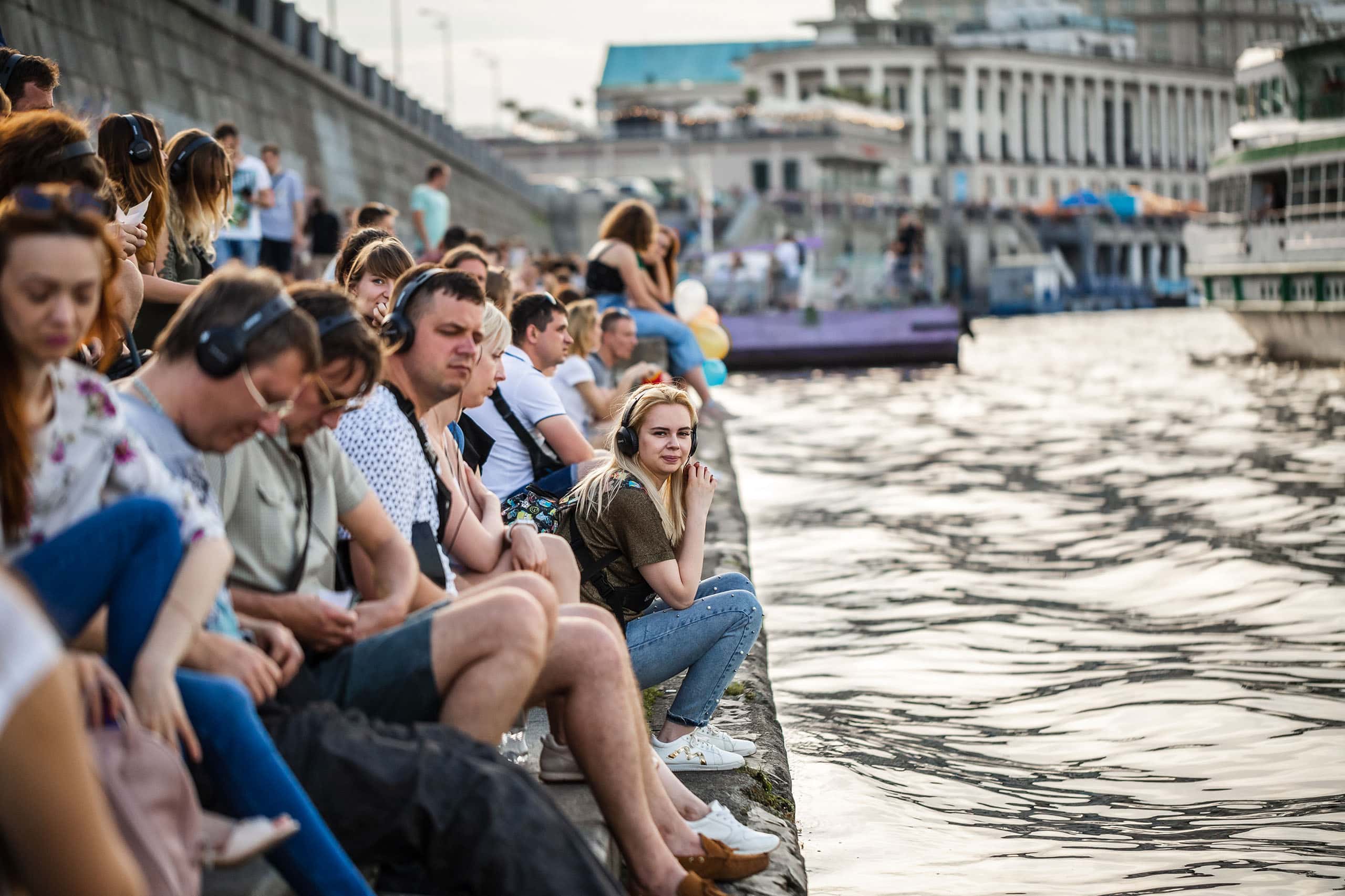 Як змінюється спектакль залежно від міста, де воно відбувається? Гарне питання. Сильно змінюється. Більше того, уявіть, що спектакль-променад THE TIME починається на мосту — гарному пішохідному мосту через Дніпро на острові Труханів. Точка старту завжди відома. Ви приходите, отримуєте обладнання, починається спектакль, і через півтори години ви опиняєтеся у фінальній точці — у зовсім іншому місці та стані.