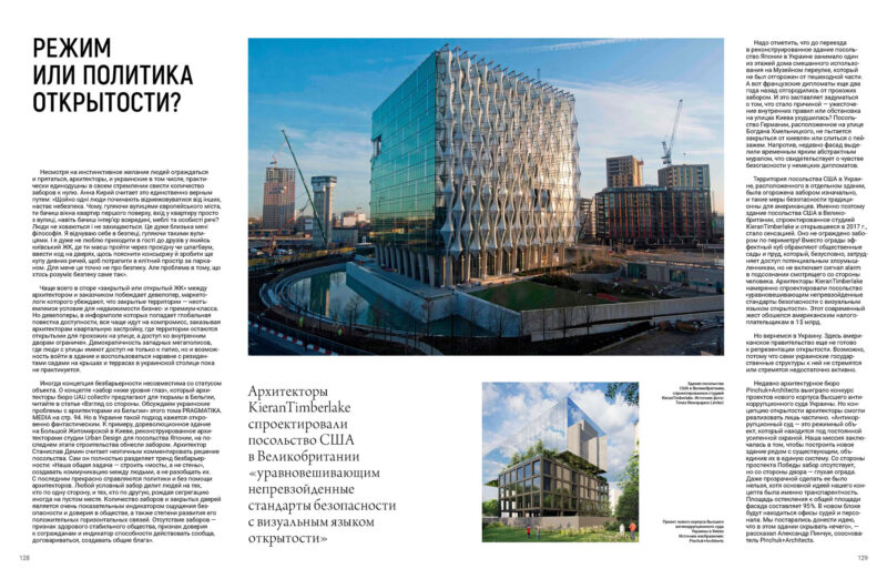 Іноді концепція безбар’єрності несумісна зі статусом об’єкта. Про концепт «огорож нижче рівня очей», який архітектори бюро UAU collectiv пропонують для в’язниці в Бельгії, читайте у статті «Погляд із боку. Обговорюємо українські проблеми з архітекторами з Бельгії» 36-го PRAGMATIKA.MEDIA на стор. 94. Але в Україні такий підхід видається відверто фантастичним. Наприклад, дореволюційну будівлю на Великій Житомирській у Києві, реконструйовану архітекторами студії Urban Design для посольства Японії, на останньому етапі будівництва обнесли огорожею.
