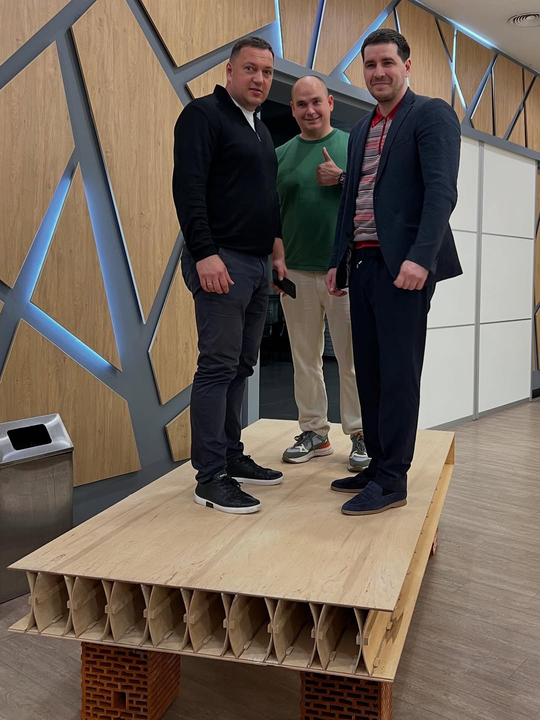 Отримані результати випробувань нових ідей дали змогу створити новітні конструктивні інноваційні рішення, як-от дерев’яні PRX-панелі (нові легкі плити перекриття) або легкі клеєфанерні панелі із жорсткими Х-подібними зігнутими фанерними ребрами. Такі панелі мають не лише низьку матеріалоємність та незначну вагу, але й дають змогу швидко перекривати прольоти 20–24 метри. Можливість повторного використання конструкцій, екологічність і простота утилізації є не менш важливими факторами для визнання цієї захищеної патентом розробки закордонними колегами та підтверджує її сучасність і актуальність.