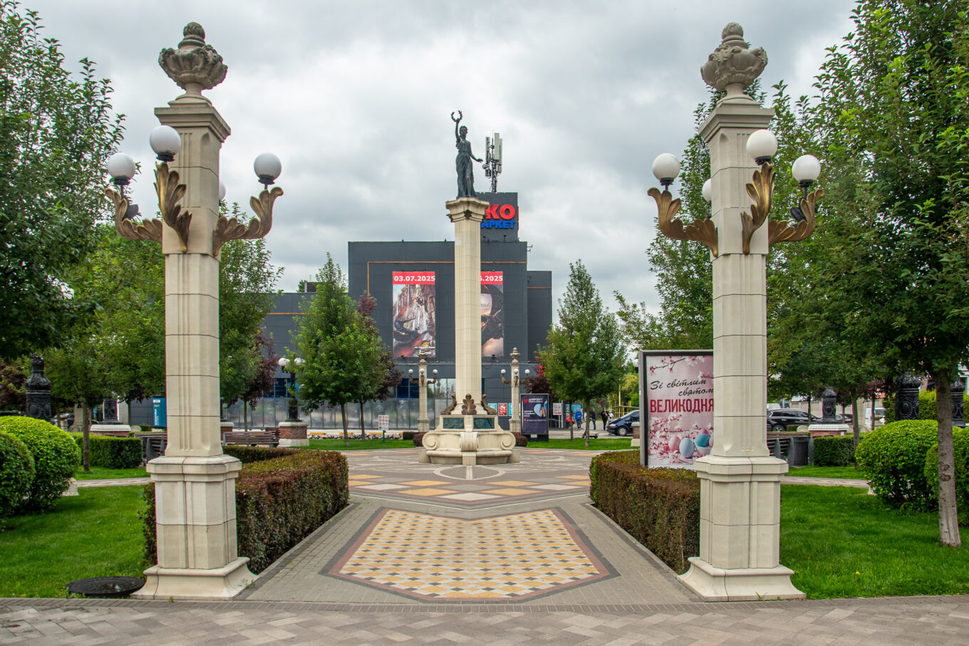 Площа Творчого Духу — реконструйована територія, що прилягає до Центральної площі Ірпеня, сильно постраждала під час окупації, але була повністю відновлена. Фото: Юрій Ферендович