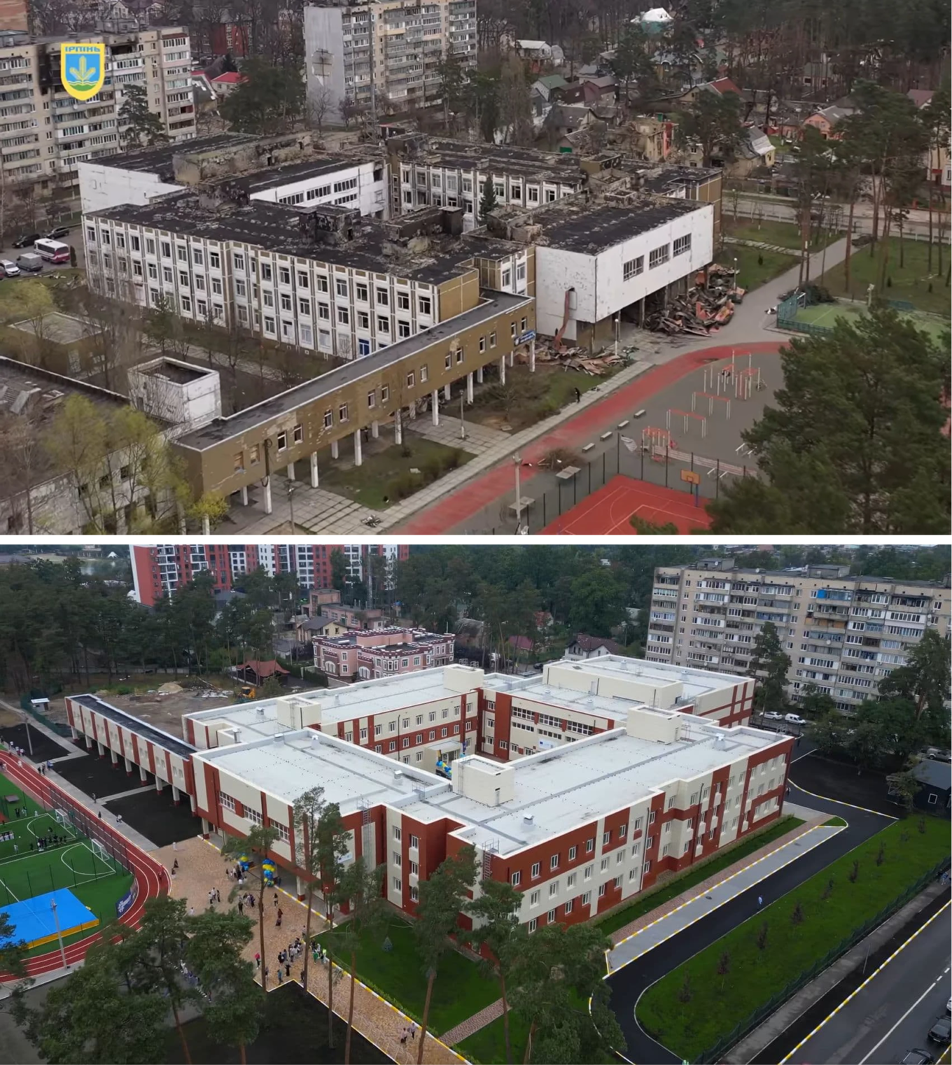 Ірпінський ліцей № 3 до та після відновлення за рахунок гранту UNICEF. Джерело фото: офіційний сайт Ірпінської міської ради (imr.gov.ua)