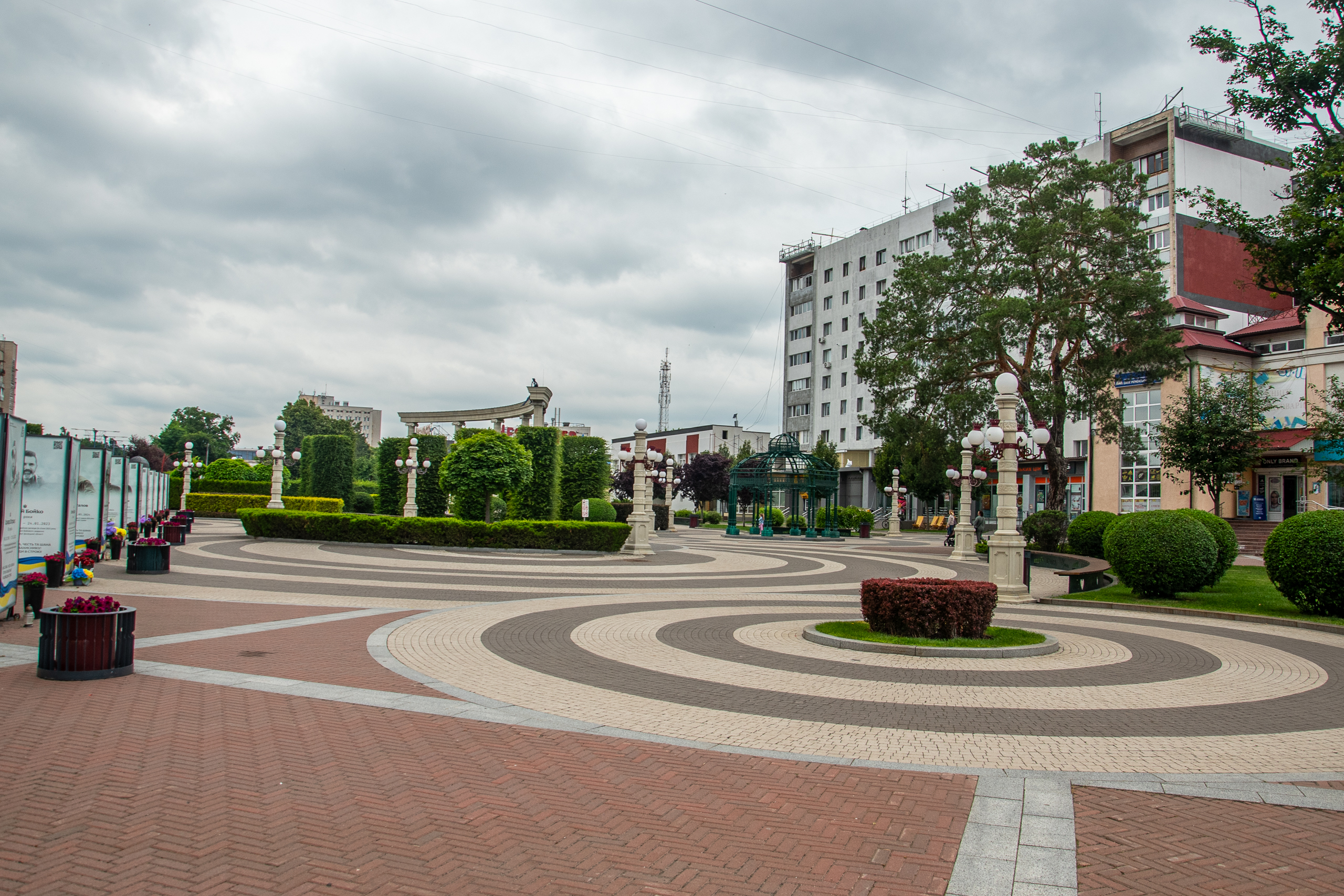 Площа Творчого Духу — реконструйована територія, що прилягає до Центральної площі Ірпеня, сильно постраждала під час окупації, але була повністю відновлена. Фото: Юрій Ферендович