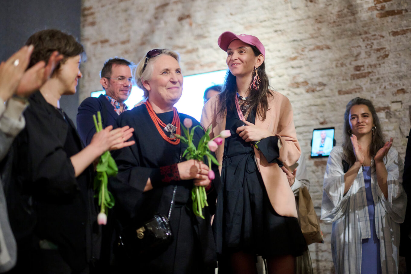 Відкриття українського павільйону DAKH (ДАХ): Vernacular Hardcore на бієнале 8 травня. На зображенні — архітекторки Оксана та Богдана Косміни. Фото: Valentyna Rostovikova, PRYZM photography