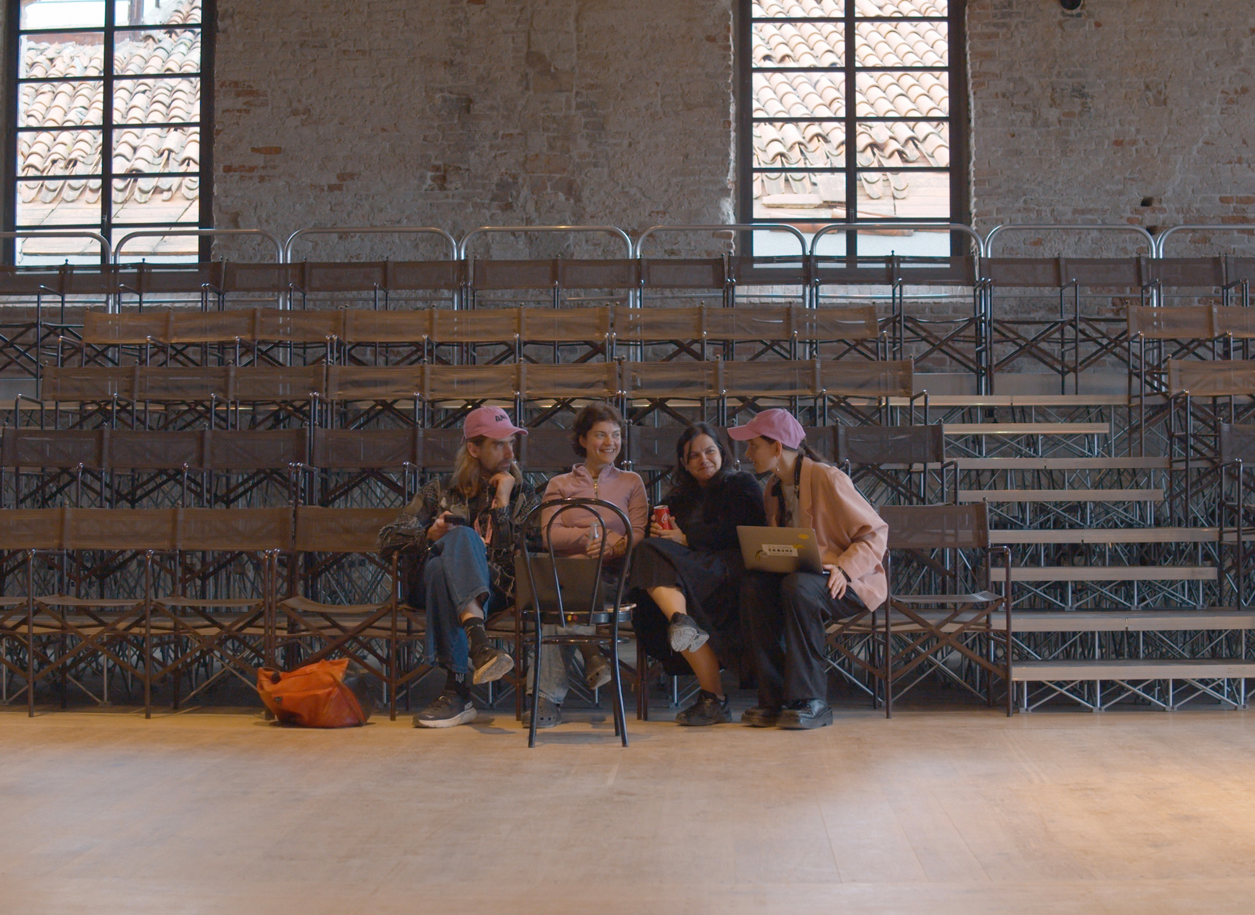 Бекстейдж, кураторський колектив: Міхал Муравськи, Катерина Русецька, Аміна Ахмед (комунікаційна менеджерка команди) та Богдана Косміна. Фото: © Maxime Faure