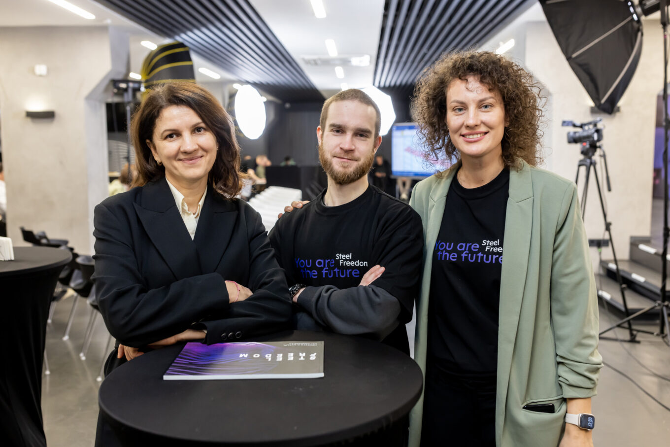 Зліва направо: Анна Гонтаренко, тимчасова виконувачка обов’язків директора Асоціації Українського центру сталевого будівництва (УЦСБ); Даниїл Апанасенко, Head of PR архітектурної компанії archimatika й куратор Steel Freedom; Марія Чуєнко, менеджерка з адміністративної діяльності УЦСБ