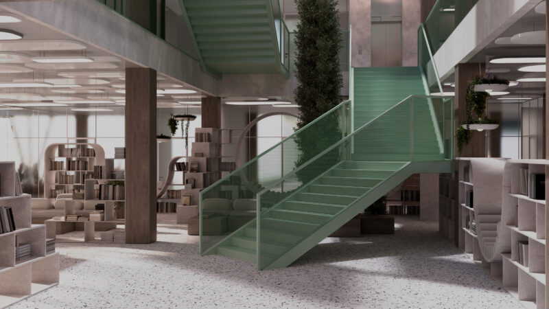 Г.С.: Особисто мені в школі дуже не вистачало простору для спілкування. Я свою школу, звичайно, люблю. Але всередині там були тільки коридори й жодних інтерактивних зон. Тож я запропонував інтегрувати в проєкт відкритий амфітеатр, щоб у теплу пору року діти могли на перервах сидіти, спілкуватися, проводити час, як вони захочуть. Також цей простір доступний для концертів, заходів тощо. Ще я додав інтерактивні коридори з відпочинковими зонами, зручні сходи, де можна сидіти, відпочивати.