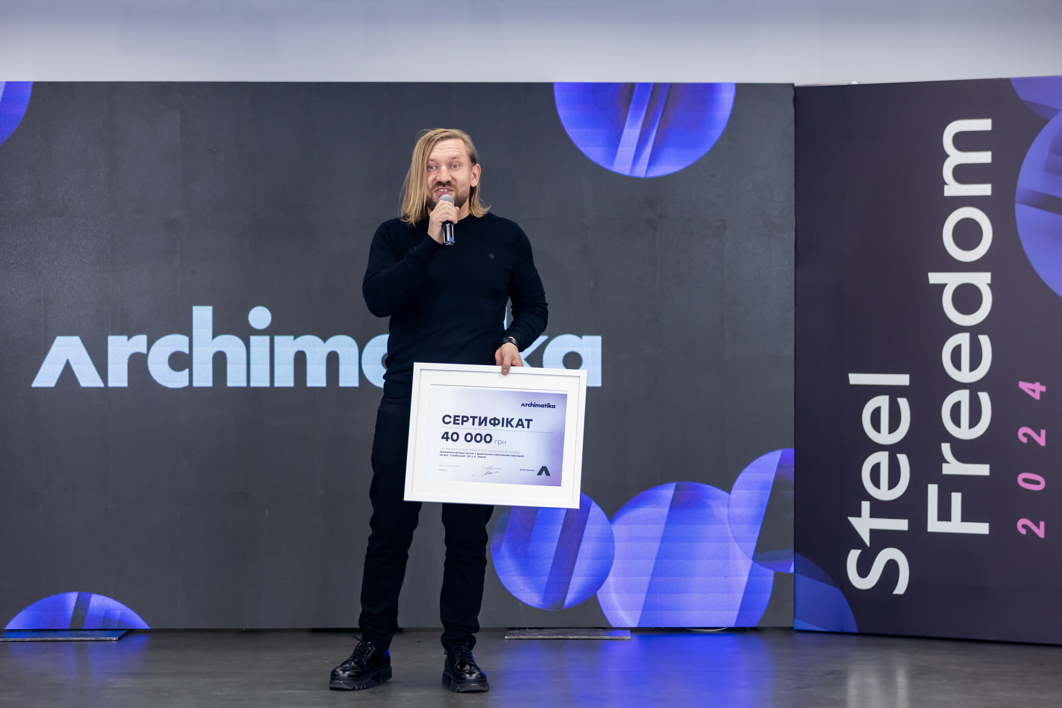 CEO та головний архітектор archimatika Дмитро Васильєв оголошує приз від компанії на суму 40 тисяч гривень для команди — автора проєкту L-310
