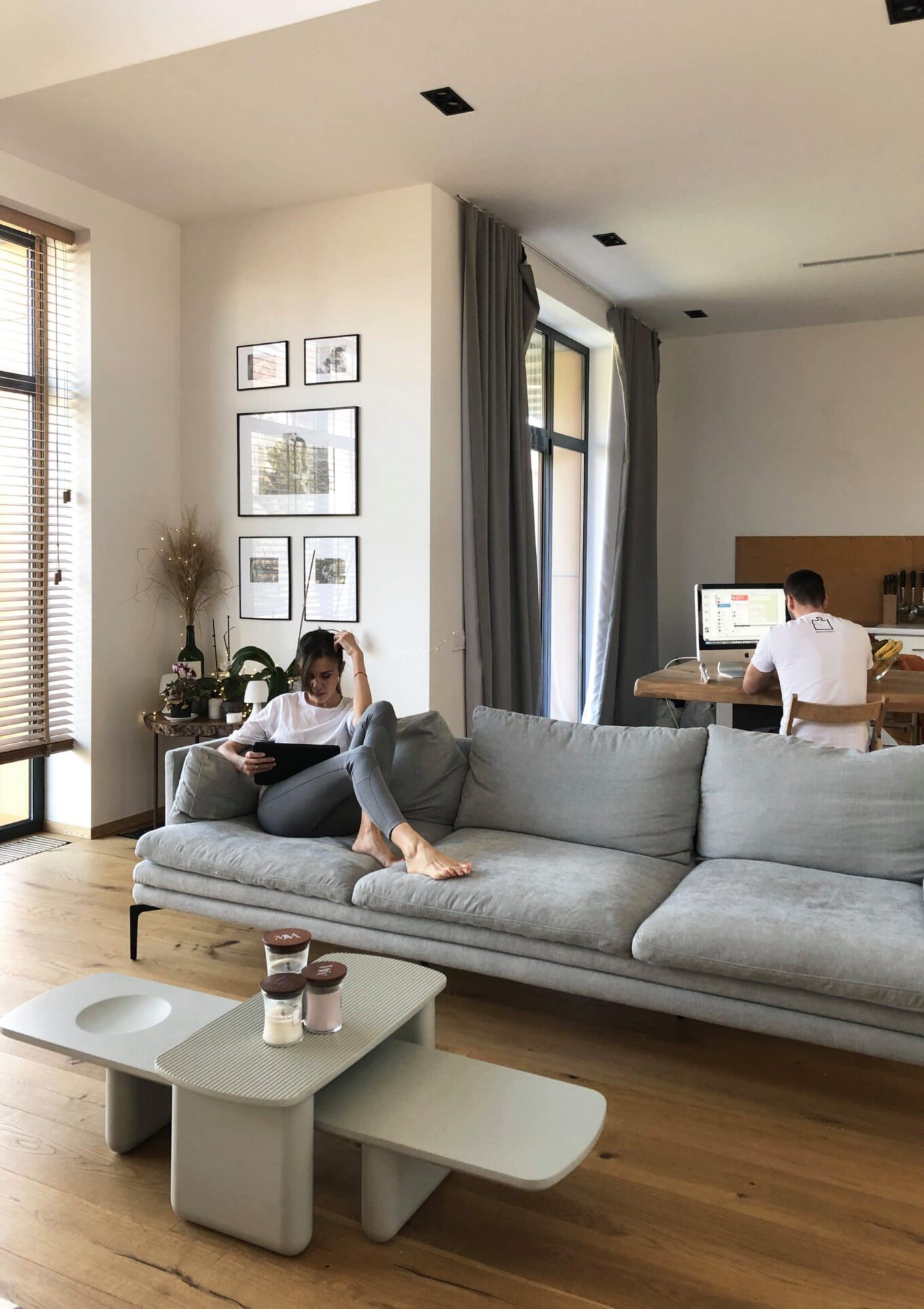 Спеціальної кімнати під кабінет ми в нашому будинку ніколи не планували. І взагалі ніколи не хотіли переносити додому робочий процес. Будинок — місце для відпочинку. У загальному просторі нашого будинку є величезний «ком’юніті»-стіл, який об’єднує всіх нас. Тому, недовго думаючи, ми додали цьому столу ще одну функцію — кабінет (докладніше про будинок дизайнерів зі SVOYA studio читайте тут).