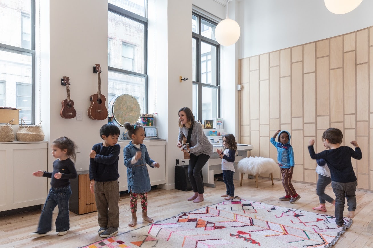 Каждое утро в классах начинается с живой музыки, а затем наступает время для йоги и медитации. Фото: Laurian Ghinitoiu. Источник изображения: BIG