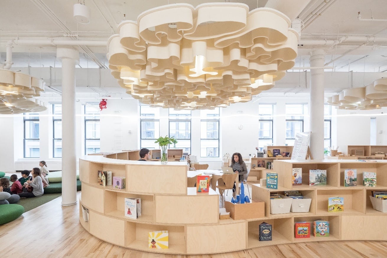Биоморфные объекты, природные тона и открытое, наполненное воздухом пространство – такой интерьер полностью отвечает требованиям Монтессори. Фото: Dave Burk. Источник изображения: BIG