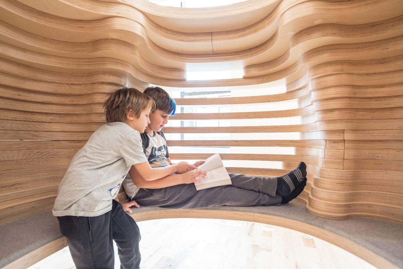 Дети сами решают как использовать интерьерные объекты – для игр или учебы. Фото: Dave Burk. Источник изображения: BIG
