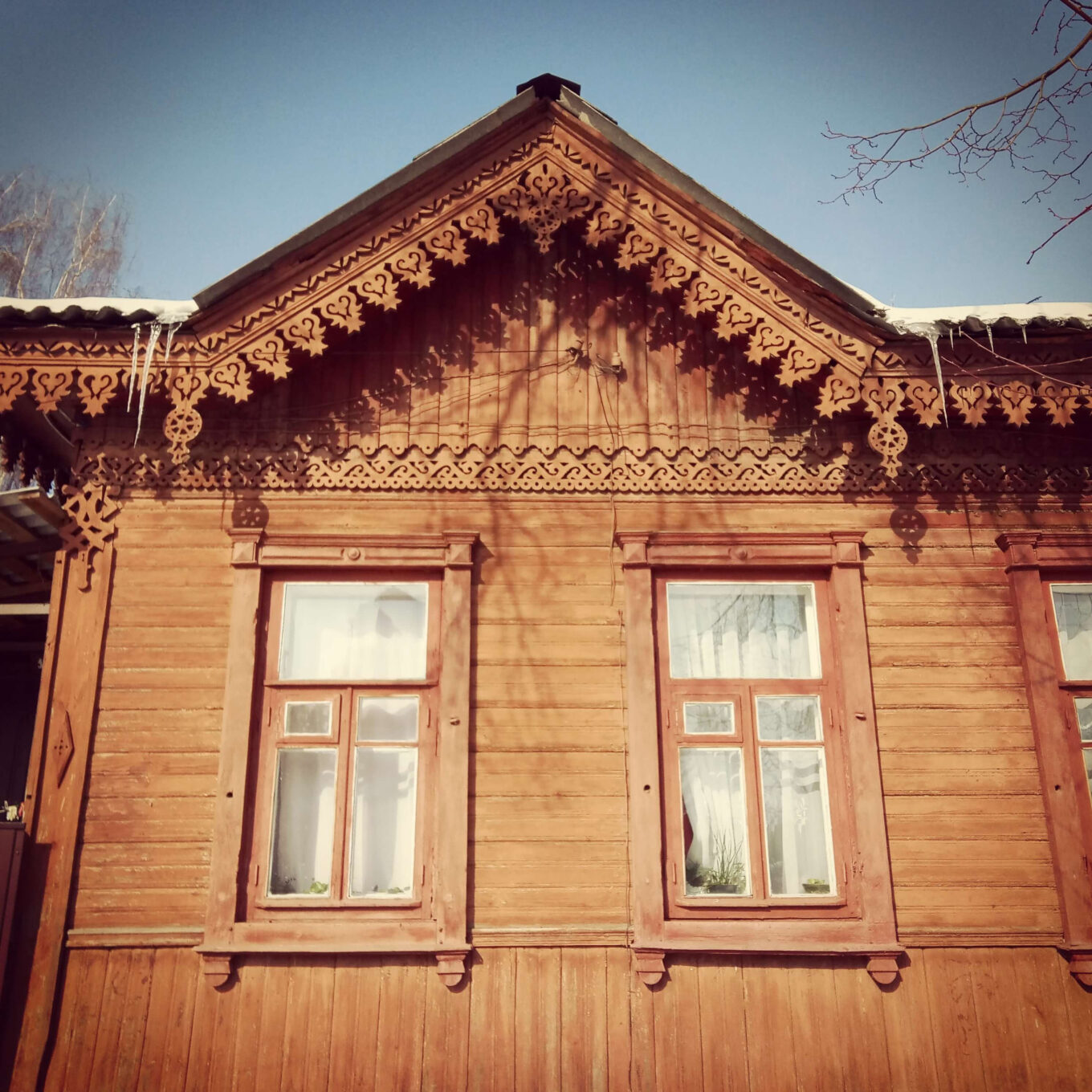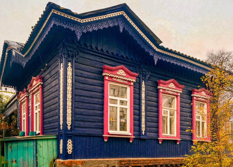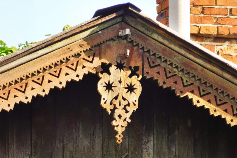 Отже, чим є типовий будинок, який можна вважати представником напряму «дерев’яне мереживо»? Це одно-, зрідка двоповерховий дім із соснового зрубу. Він вкритий дранкою та обшитий дошками, має чотирискатний дах і вікна з віконницями, а також опційно — ґанок із красивим дашком. І, звісно ж, різьблені прикраси.