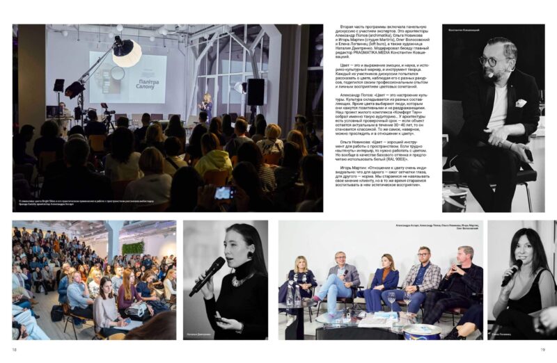 Друга частина програми містила панельну дискусію за участю експертів. Це архітектори Олександр Попов (archimatika), Ольга Новікова та Ігор Мартін (студія Martin’s), Олег Волосовський і Олена Логвинець (loft buro), а також художниця Наталія Дмитренко. Модерував бесіду головний редактор PRAGMATIKA.MEDIA Костянтин Ковшевацький.