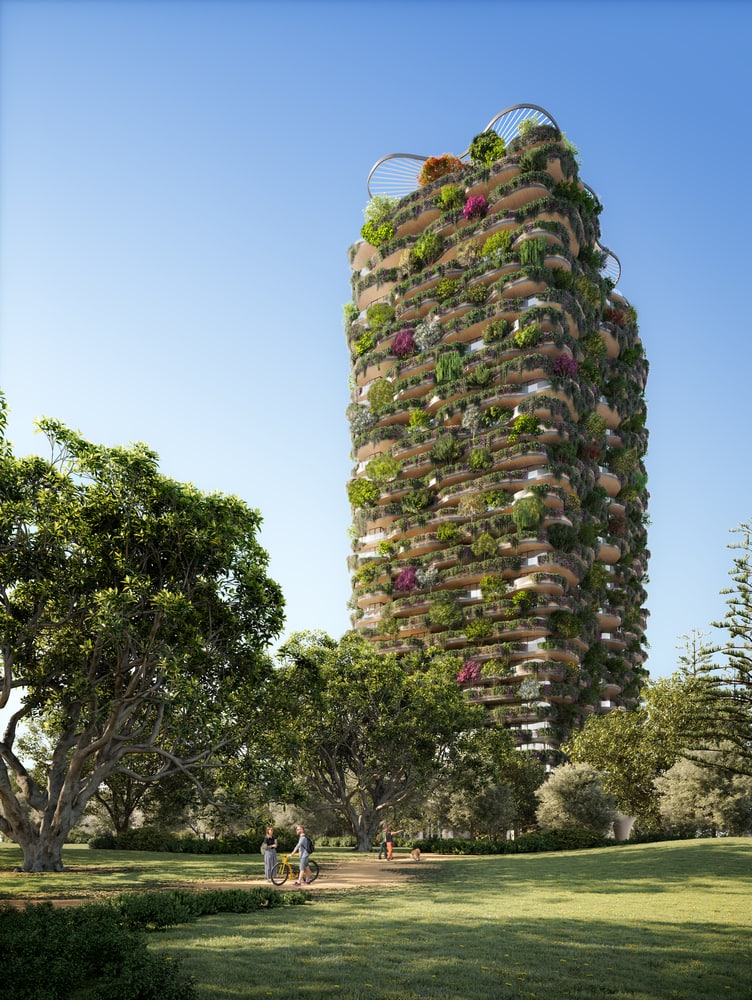 Тридцатиэтажный зеленый небоскреб от Коити Такада – новый проект, разработанный студией архитекторов в Брисбене, «спроектированный, как полезный, удобный и дружелюбный общественный парк для сообщества».