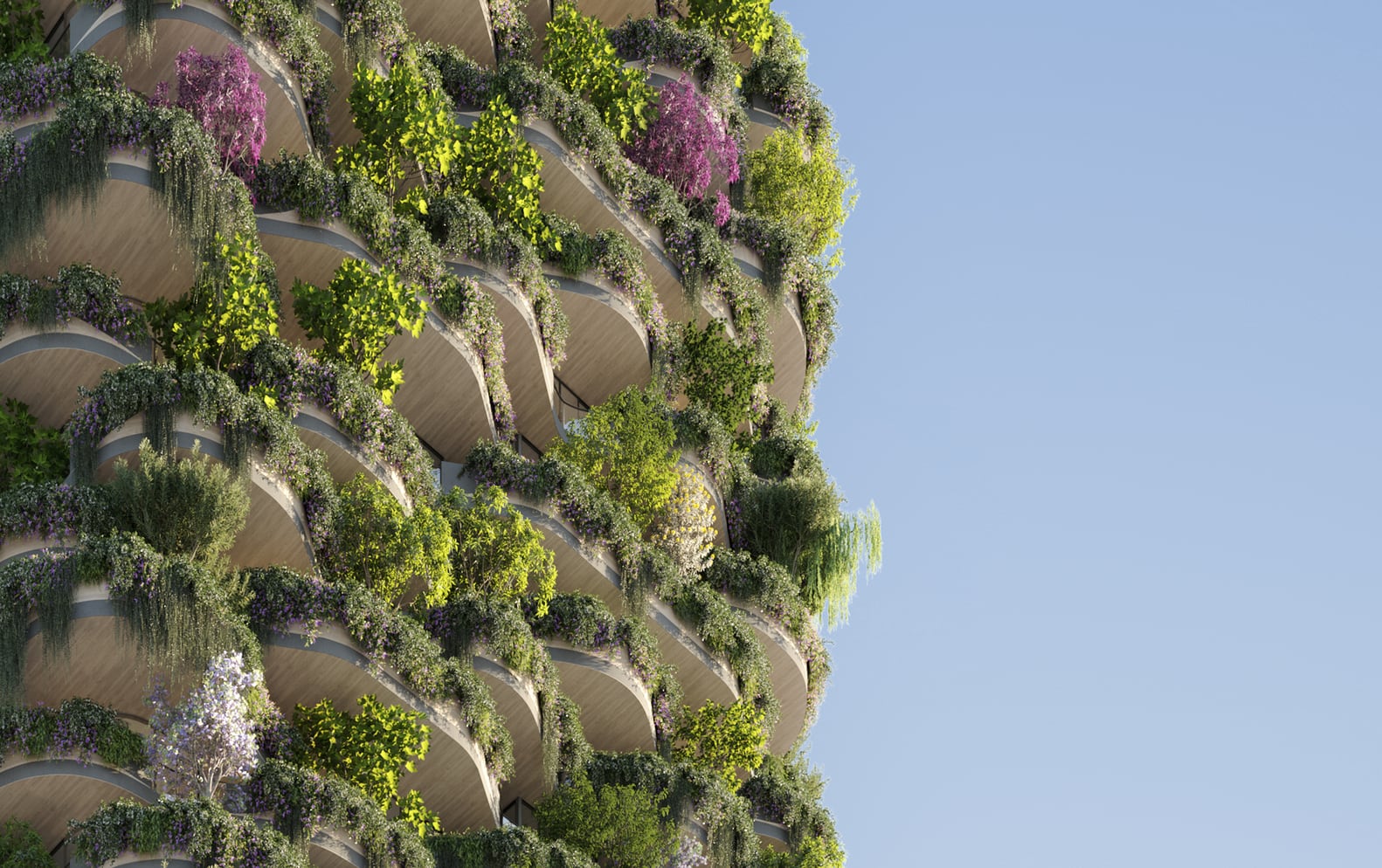 Ко всему прочему, такие фасады с широкими террасами для зеленых насаждений – своеобразная аллюзия на Сады Семирамиды. Кроме того, это еще и невероятное эстетическое удовольствие.