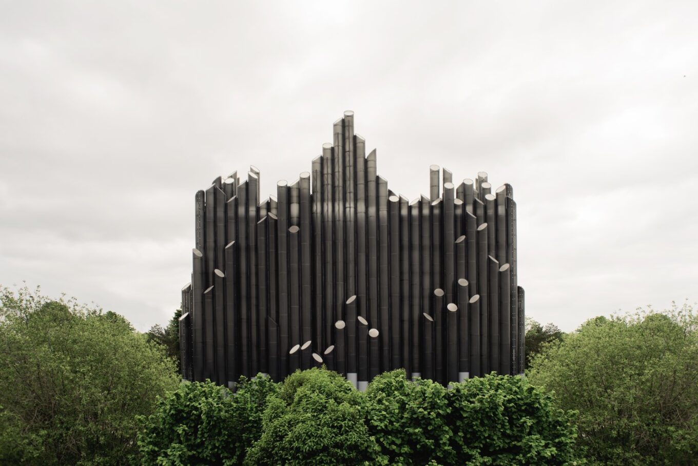 Le Tapis Magique – структура в виде органа, 5 километров стекловолоконных труб, которые подсвечиваются разноцветными светодиодами. Высота фасада достигает 60 метров. Фото: Aumond Aurélien