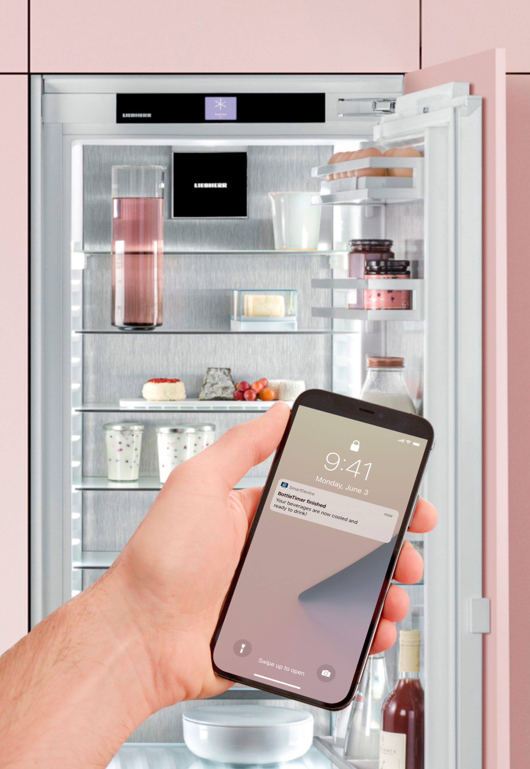 Якщо в режимі BottleTimer прилад помітив, що ви забули напої в морозильній камері, Liebherr Smart Device App надішле вам push-сповіщення. Зображення надала корпорація MIRS