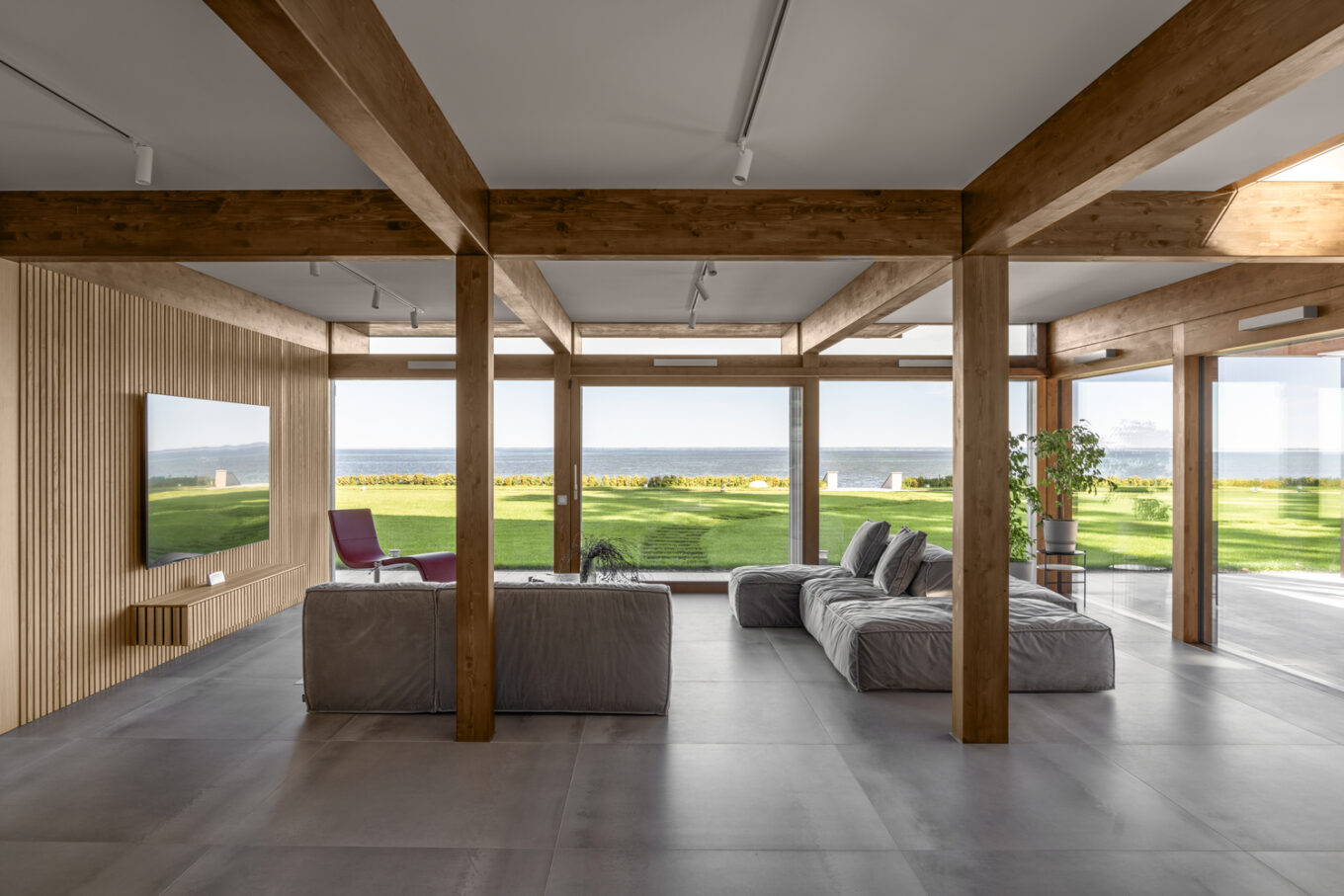 Лаконічний будинок у передмісті Дніпра представлений одразу у двох номінаціях. Він елегантно вписаний у навколишній ліс без будь-якого втручання у ландшафт. Аскетична форма будинку приховує загальну енергоефективність: вітражі орієнтовані на південний схід і південний захід, що є найбільш ефективним для цього регіону України.