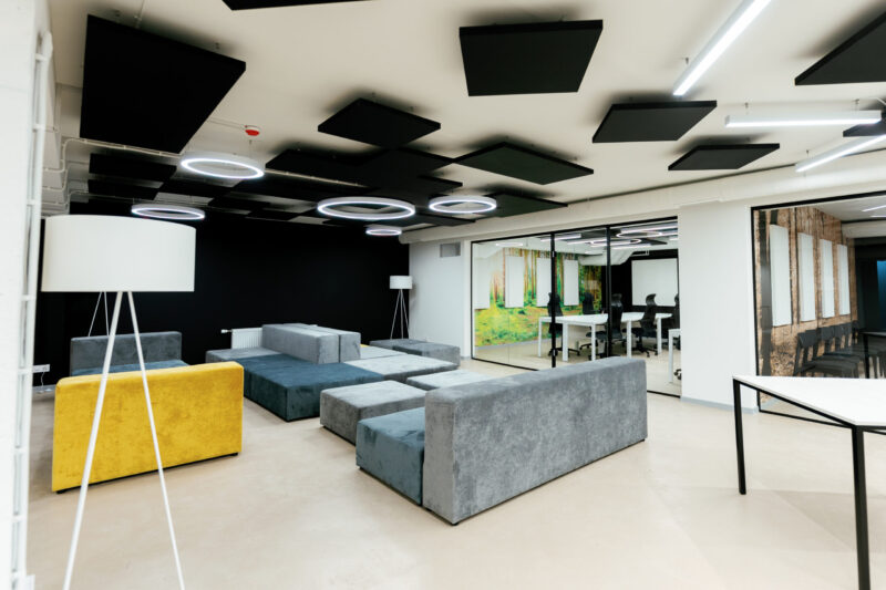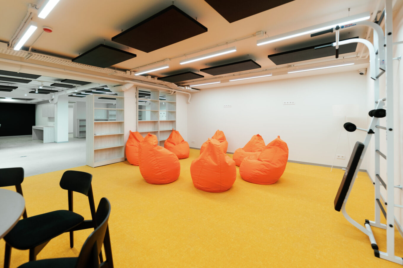 Окрім загального оупен спейсу, в просторі є великі переговорки та кімнати для онлайн-зустрічей, читацькі зали, кафетерій, ігрова зона, душові кабіни та інклюзивні вбиральні. Як укриття простір може вмістити близько 500 людей.