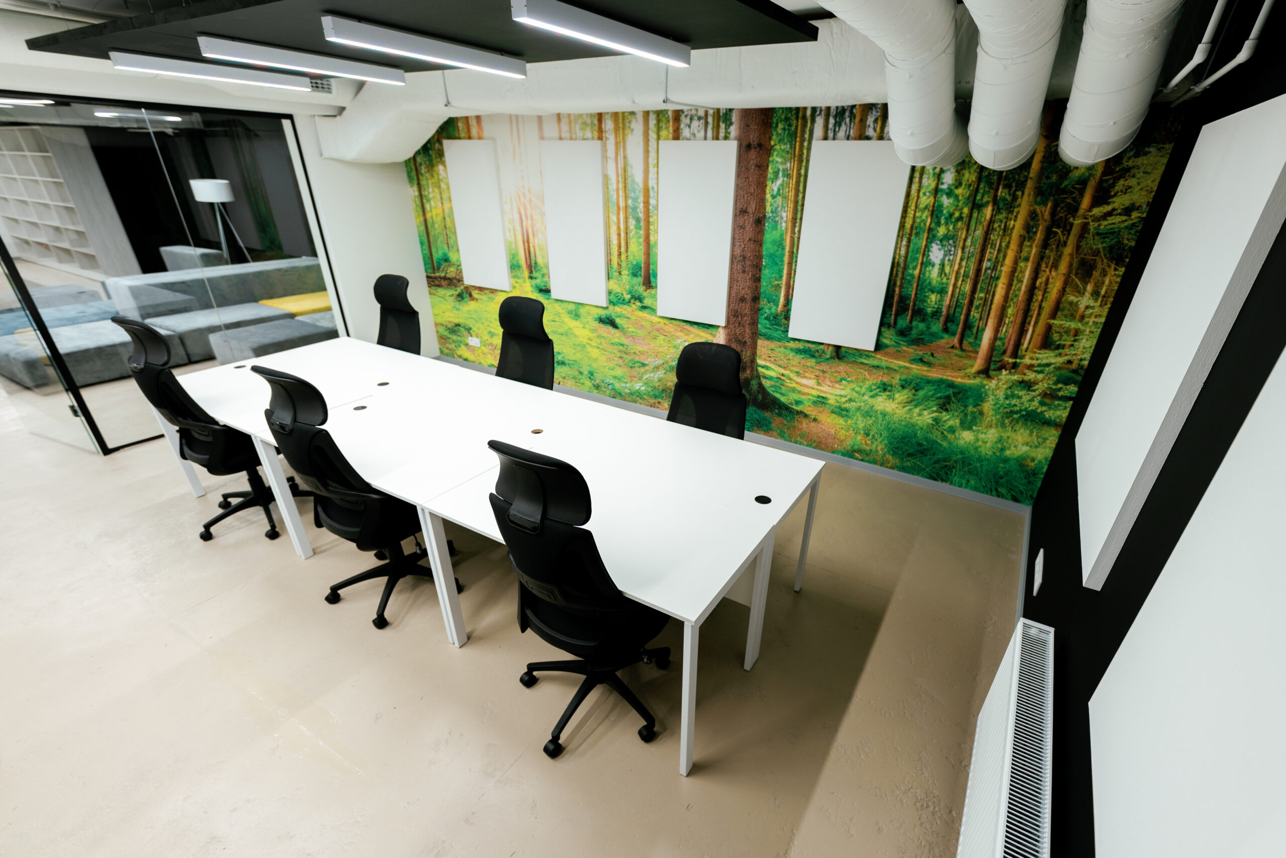 Окрім загального оупен спейсу, в просторі є великі переговорки та кімнати для онлайн-зустрічей, читацькі зали, кафетерій, ігрова зона, душові кабіни та інклюзивні вбиральні. Як укриття простір може вмістити близько 500 людей.