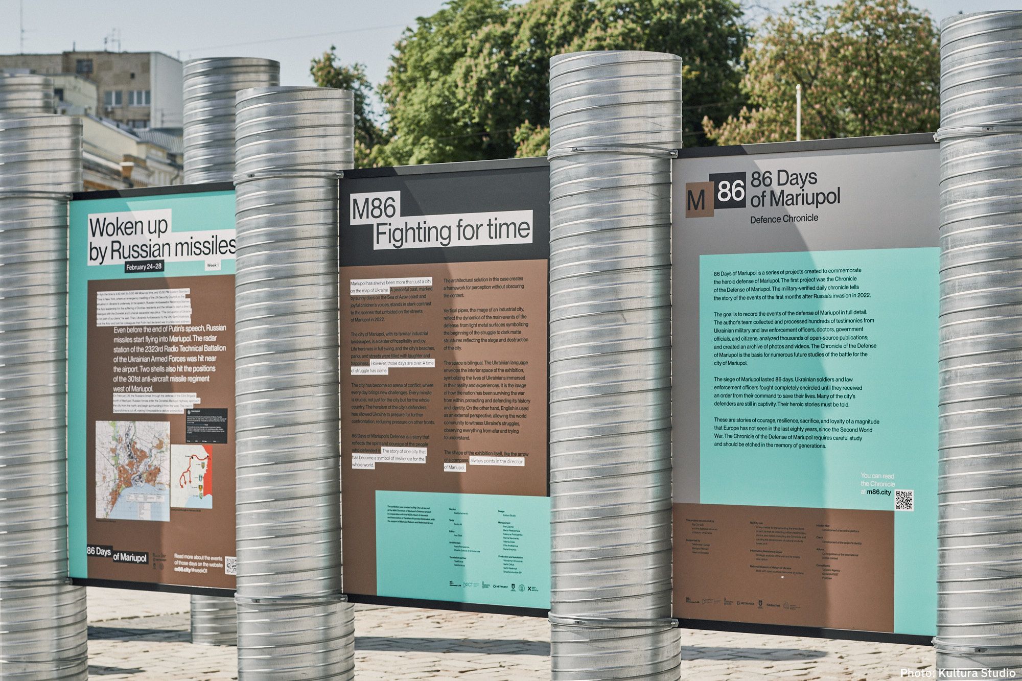 На Софіївській площі в Києві відбулось відкриття виставки “86 днів Оборони Маріуполя”, що розповідає про 10 основних подій з літопису оборони міста. Наряду з основною метою проєкту М86 зафіксувати події оборони Маріуполя в усіх подробицях та створити базу, на основі якої у майбутньому проводитимуться чисельні дослідження про битву за місто, сама виставка має місію через суспільний розголос сприяти визволенню захисників Маріуполя, більшість з яких і досі знаходяться в російському полоні. Таким чином у проєкті практики пам’яті використовуються для активізації громадянського суспільства. Пам’ять про події оборони міста стає рушієм боротьби за майбутнє оборонців та самого Маріуполя. За задумом організаторів виставка має мандрувати містами України і Європи, підсилювати суспільний інтерес і сприяти підтримці міжнародної спільноти.