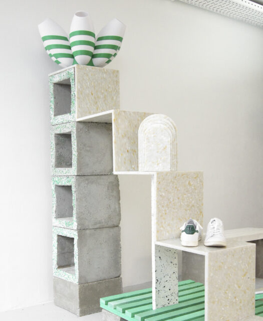 Панелі Salt Dune від The Good Plastic Company в новій інсталяції в Adidas Originals Store Le Marais. Фото: lecinquiemeproduction, deicy_sanches, vanillebusin