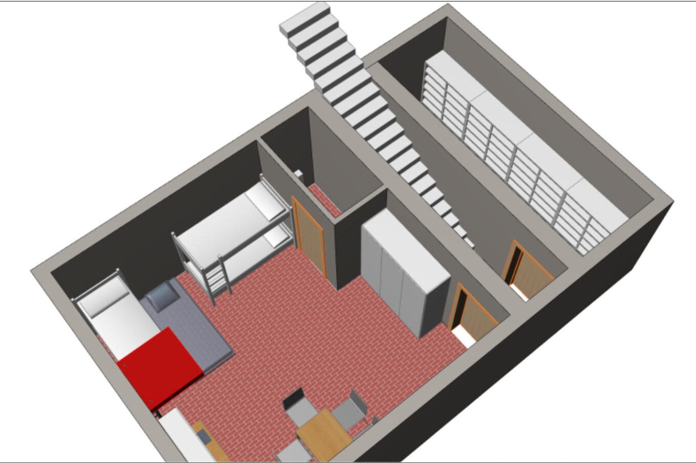 Сховище може вмістити 2-3 дорослих і 3 дітей. В бетонній конструкції буде два виходи, на випадок, якщо один заблокується. А також передбачене спеціальне місце для зберігання їжі та води, з розрахунку на 3-10 днів ізоляції.