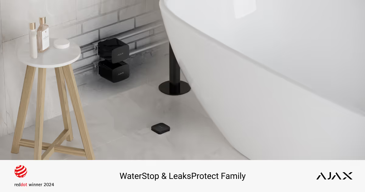 Антипотоп-система WaterStop & LeaksProtect розроблена для захисту будинків і майна від затоплення. WaterStop автоматично перекриває воду за 5 секунд після тривоги датчика. Фото: Ajax Systems
