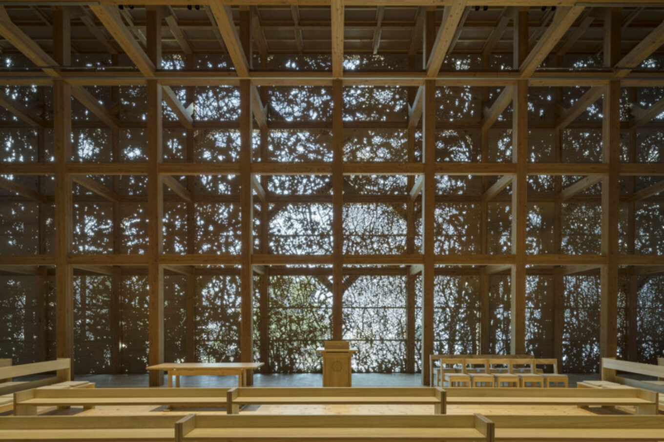 Новий погляд на те, якою повинна бути сучасна каплиця, демонструє проєкт Niijima Gakuen Junior College Hall & Chapel. Прозорий фасад будівлі вкриває розлогий орнамент, на якому, за задумом архітекторів, зображено густий ліс – шлях Адама і Єви, вигнаних з Едему.