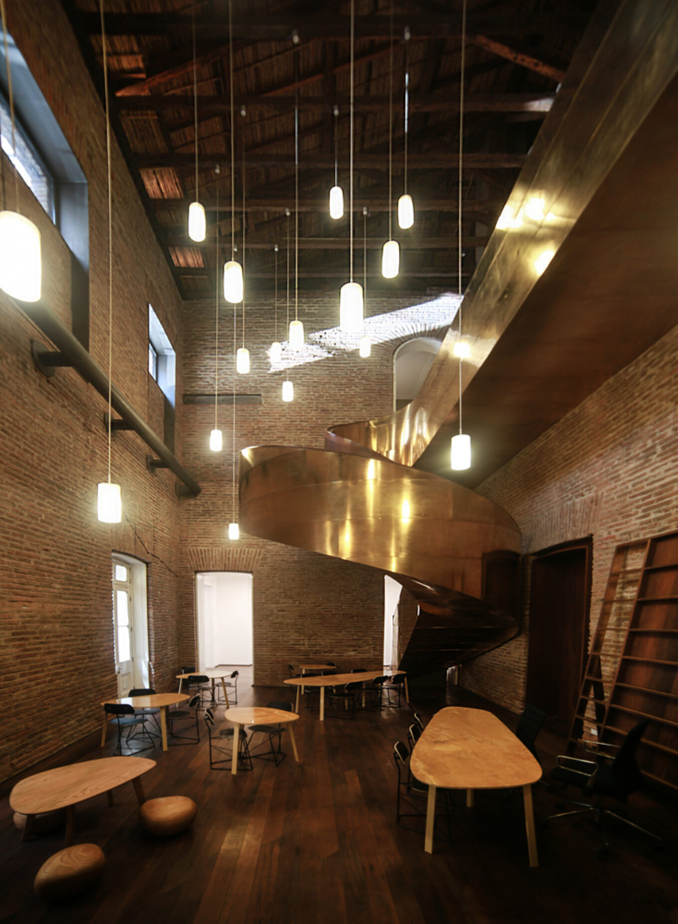 Цей ресторан у китайському місті Міле побудували лише за використання червоної цегли, без жодного цвяха чи металевої конструкції. Фасад будівлі формується з об’єднаних між собою конічних конструкцій, а дах замінили на мансардні вікна, аби приміщення отримало більше світла.