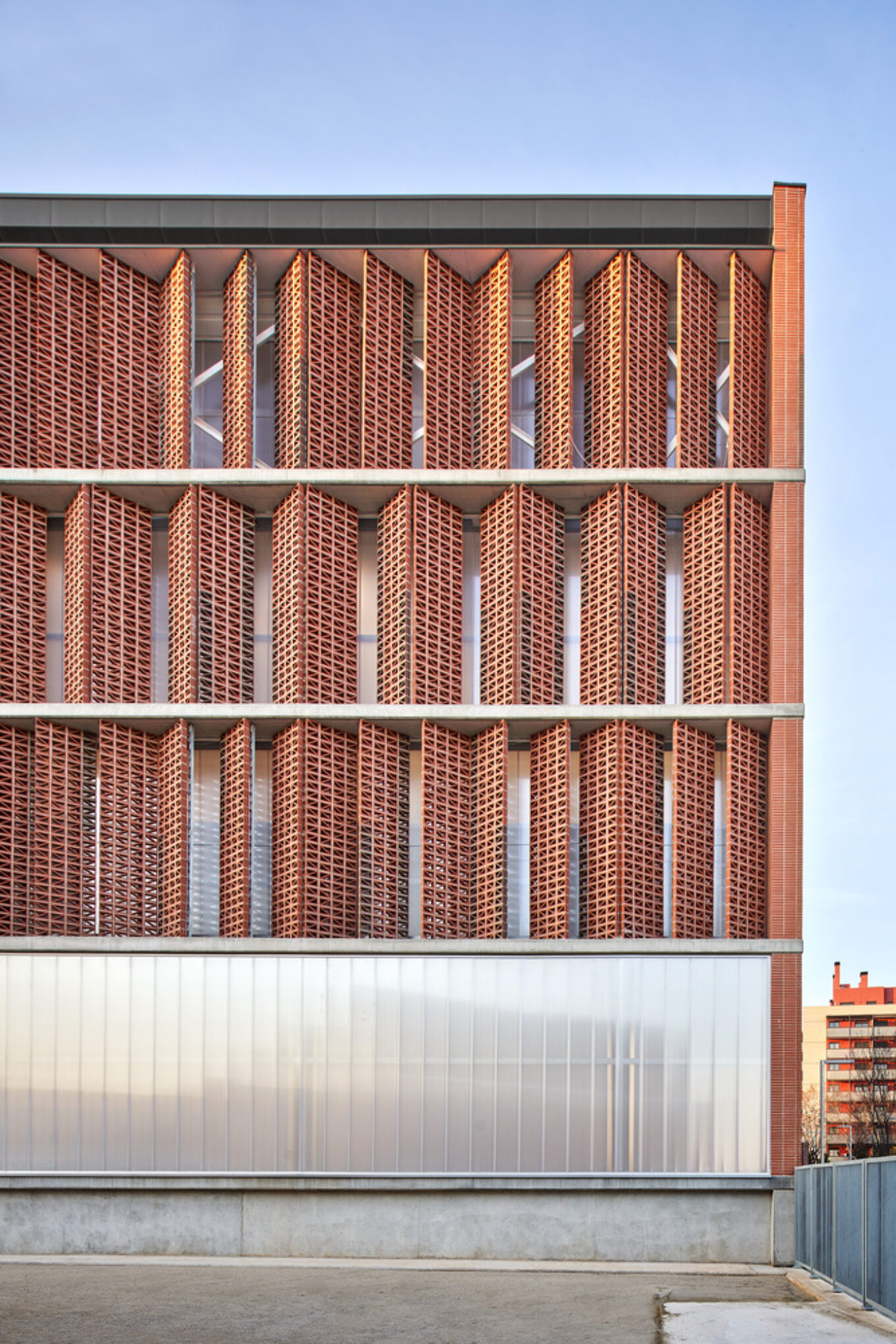 Спортивний комплекс Camp del Ferro площею понад сім тисяч квадратних метрів звели в Барселоні. Будівля має унікальний фасад – його частини розташовані таким чином, що утворюють перехресну вентиляцію, завдяки якій суттєво покращується циркуляція повітря в приміщеннях.