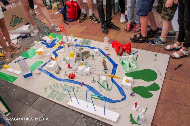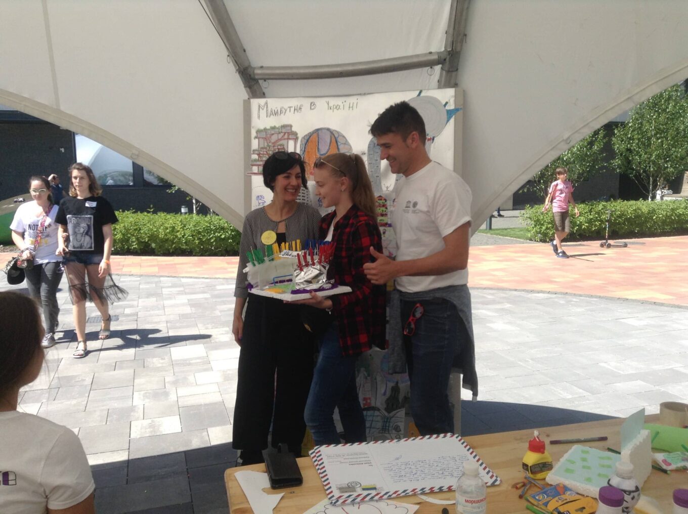 Идеи юных архитекторов вполне можно взять на вооружение. Например, команда под кураторством приглашенного испанского архитектора Долорес Виктории Руиз Гарридо, основательницы архитектурной организации для детей Little Architet в Лондоне, предложила свой вариант преобразования Киева. Свои мысли они представили в том числе в виде стенда «Майбутнє в Україні» с коллажами и эскизами, в которых угадывались знаковые для города архитектурные объекты. Дети даже написали письма мэру с конкретными предложениями по благоустройству и улучшению жизни столицы.