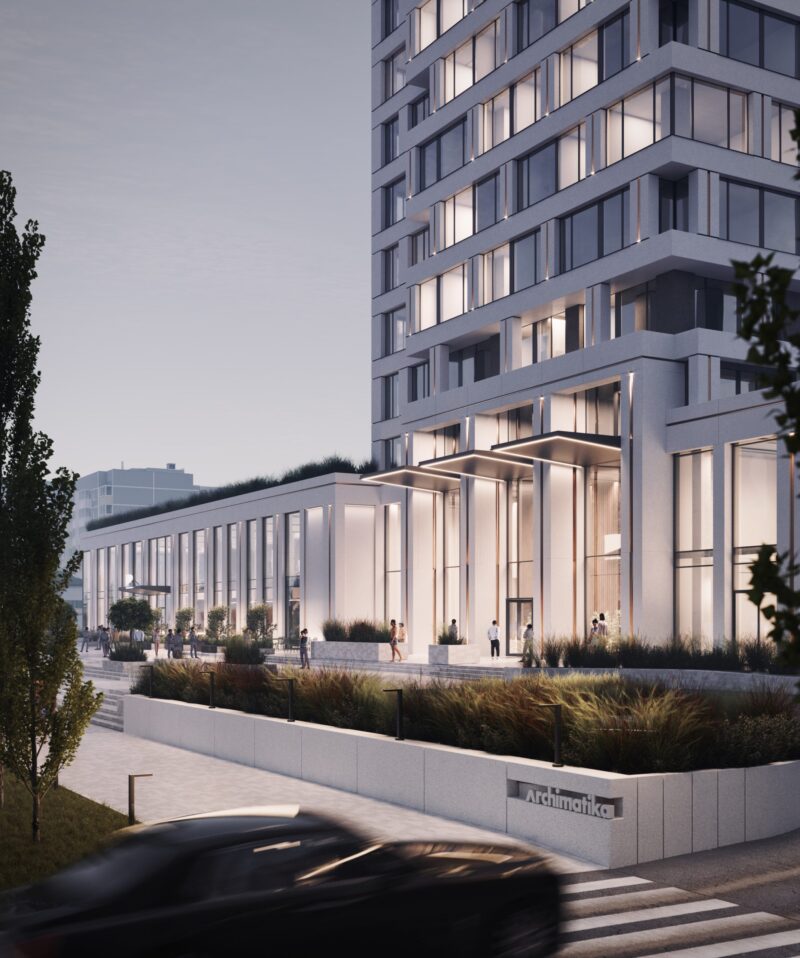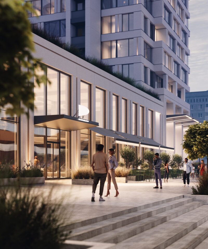 Оскільки функція будівлі була змінена на житло, питання якісного благоустрою прибудинкового простору стояло дуже гостро. Існуюча частина стилобату дозволяла влаштувати зелений дах, але не витримала б навантаження від субстрату та дерев. Тому команда заклала більший запас міцності під більш складний благоустрій на тій частині стилобату, яку ще не було збудовано.