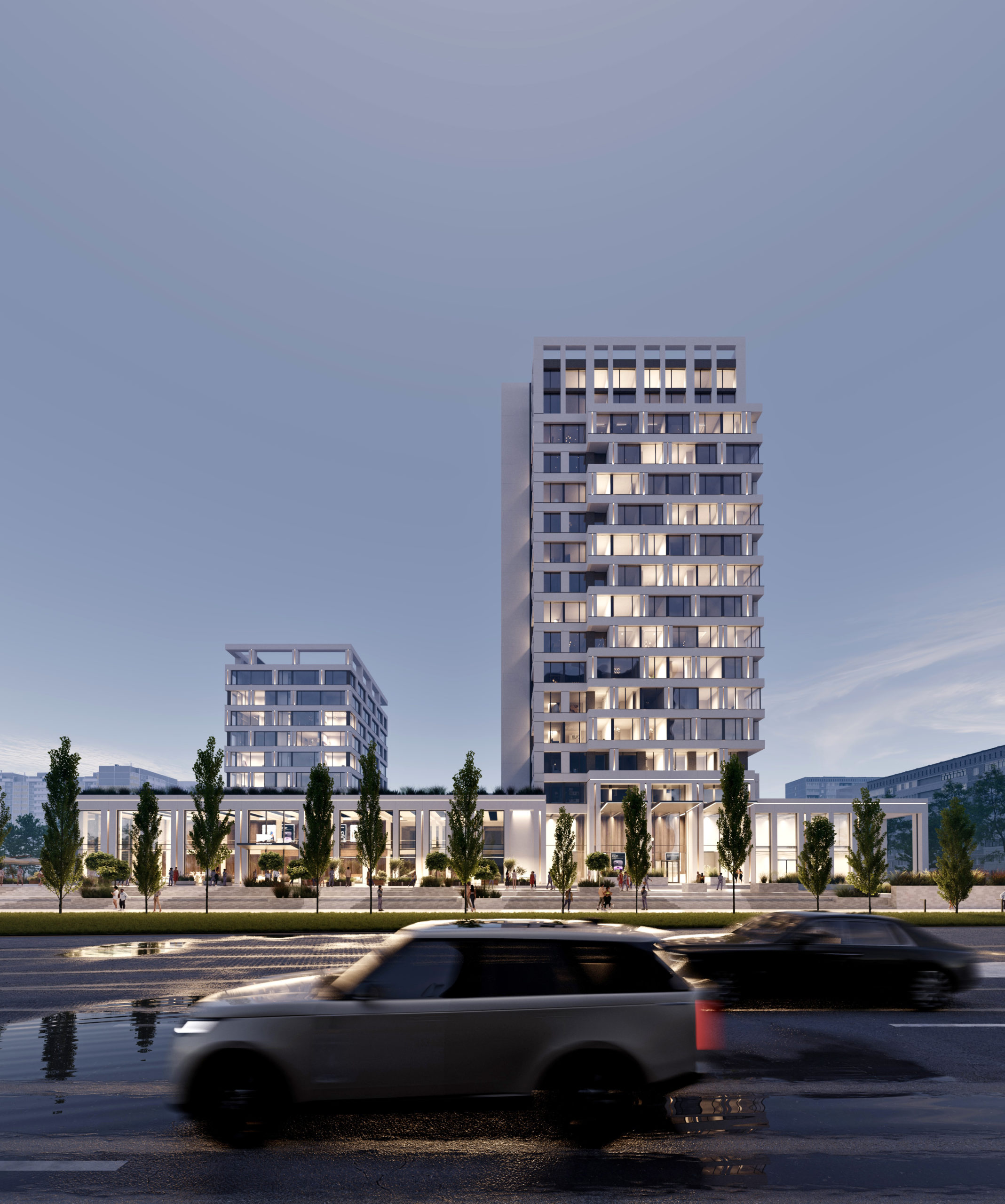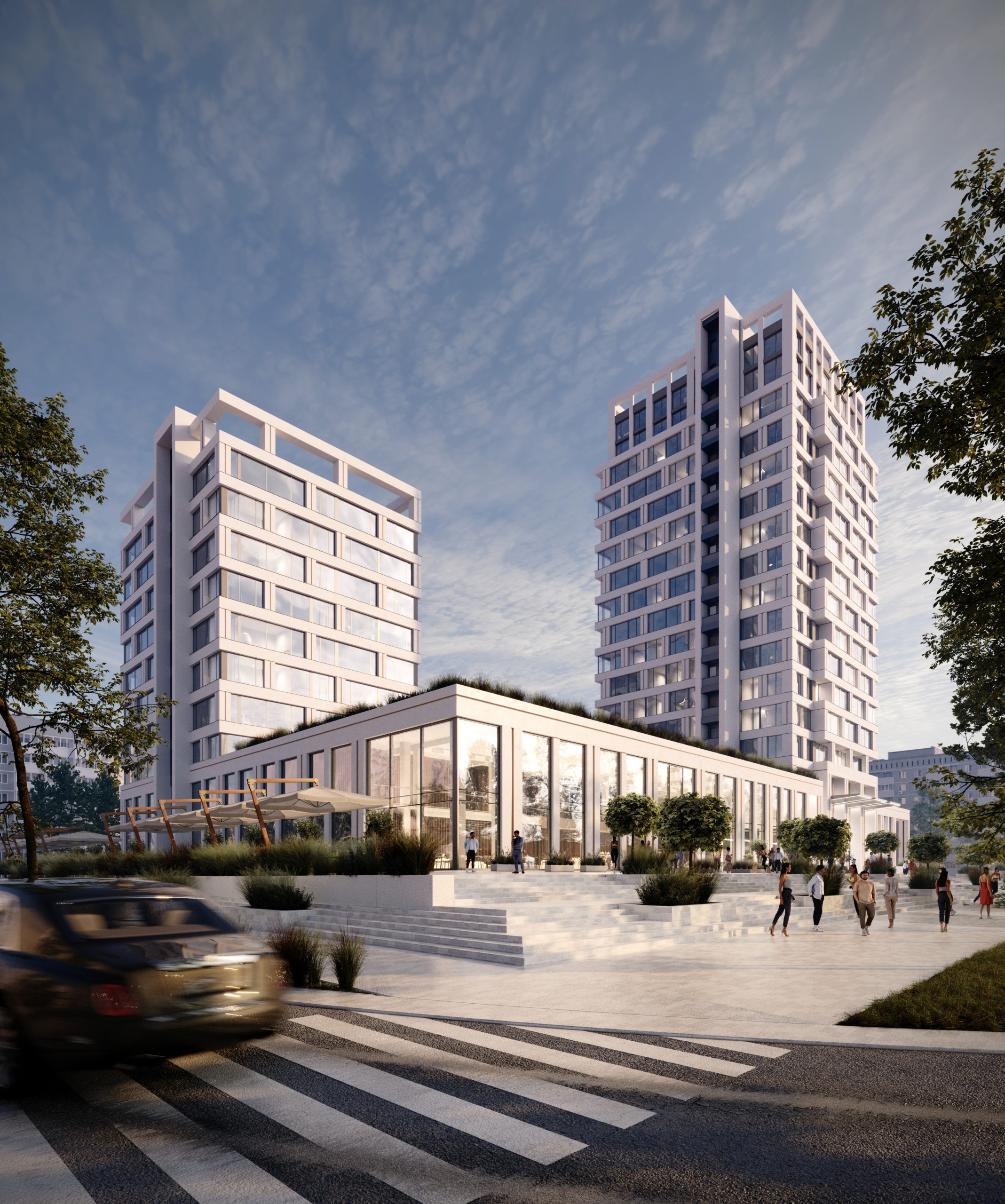 Оскільки функція будівлі була змінена на житло, питання якісного благоустрою прибудинкового простору стояло дуже гостро. Існуюча частина стилобату дозволяла влаштувати зелений дах, але не витримала б навантаження від субстрату та дерев. Тому команда заклала більший запас міцності під більш складний благоустрій на тій частині стилобату, яку ще не було збудовано.