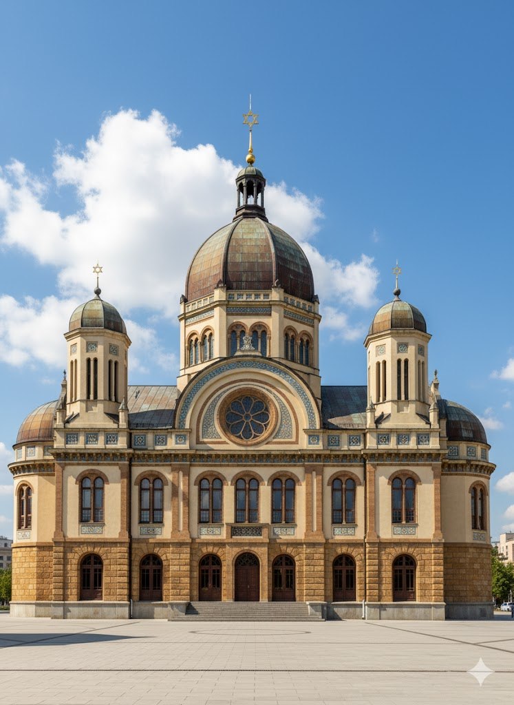 - Синагога поступовців (1894 р.) архітектора Максиміліана Шльосса мала повторювати композицію великої синагоги Берліна, проте виявилася надто дорогою для громади. На її місці звели значно простіший Темпль.