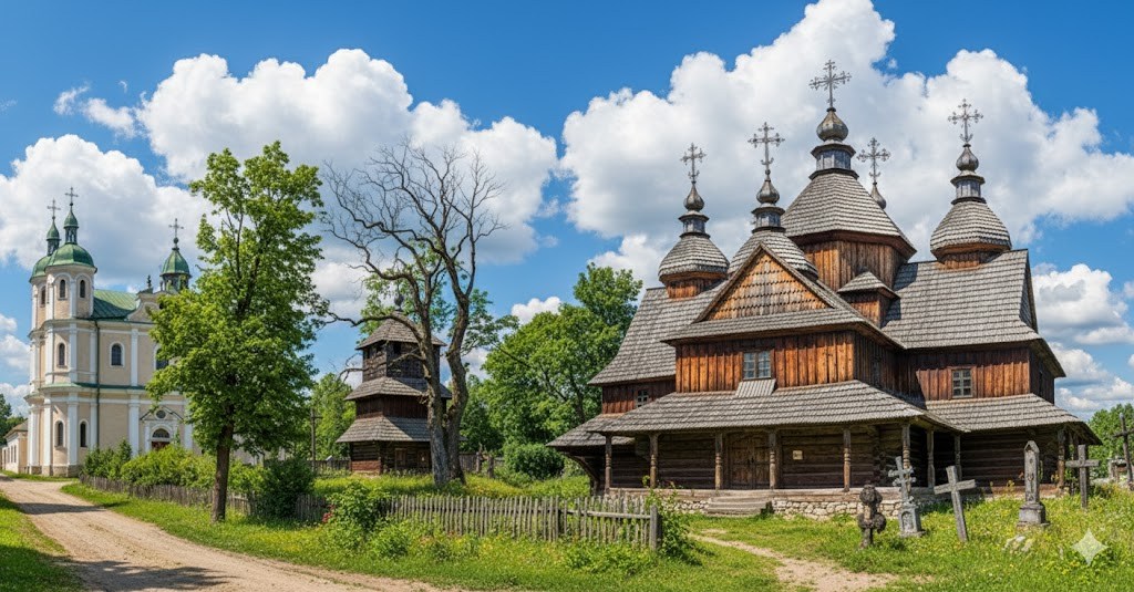 Також у проєкті з’явилася дерев’яна церква Воскресіння Христового, розібрана у 1815 році. Вона не збереглася на зображеннях, а відтворив її графічно архітектор Зеновій Соколовський. Саме цей рисунок став базою для сучасної візуалізації. Сьогодні на місці храму розташована синагога Темпль.