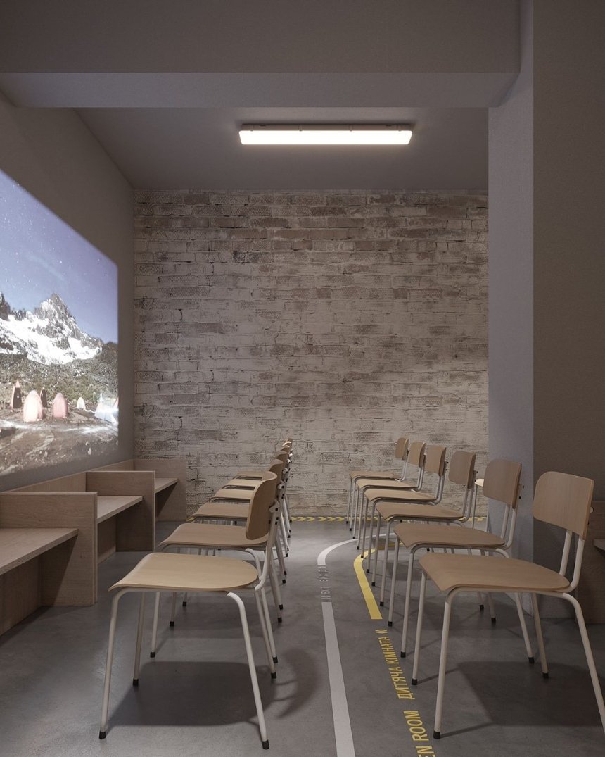 “Головна ідея полягала в створенні надійного та приємного місця для тривалого перебування громадян в безпеці. Приміщення було розподілене на зони, щоб забезпечити комфортне перебування людей усіх вікових груп – дітей, дорослих та літніх людей”, – пояснюють архітектори.