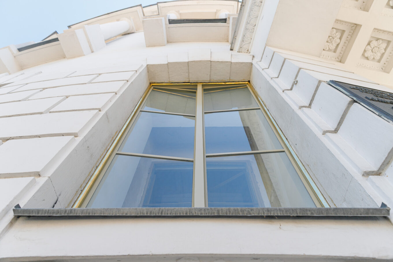 «Відповідно до меморандуму між Департаментом освіти і науки КМДА, Всесвітнім фондом пам’яток (World Monuments Fund) та Київським міським будинком учителя передбачено реставрацію 24 автентичних металевих вікон. Наразі відновлено вікна першого поверху головного фасаду, тривають роботи в галереї основної зали другого поверху, де у січні 1918 року було проголошено IV Універсал про незалежність України», — зазначив Мондриївський.
