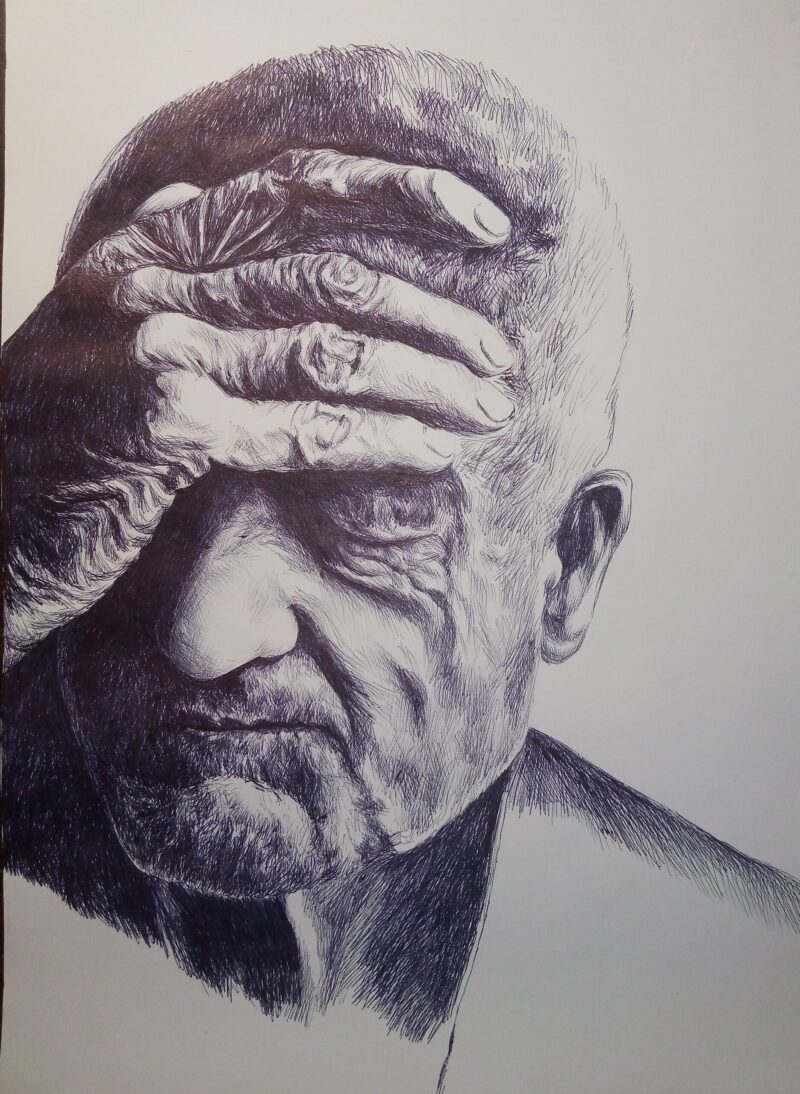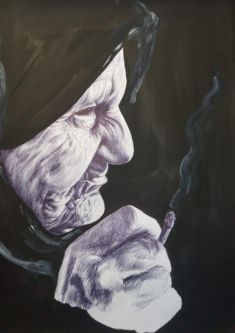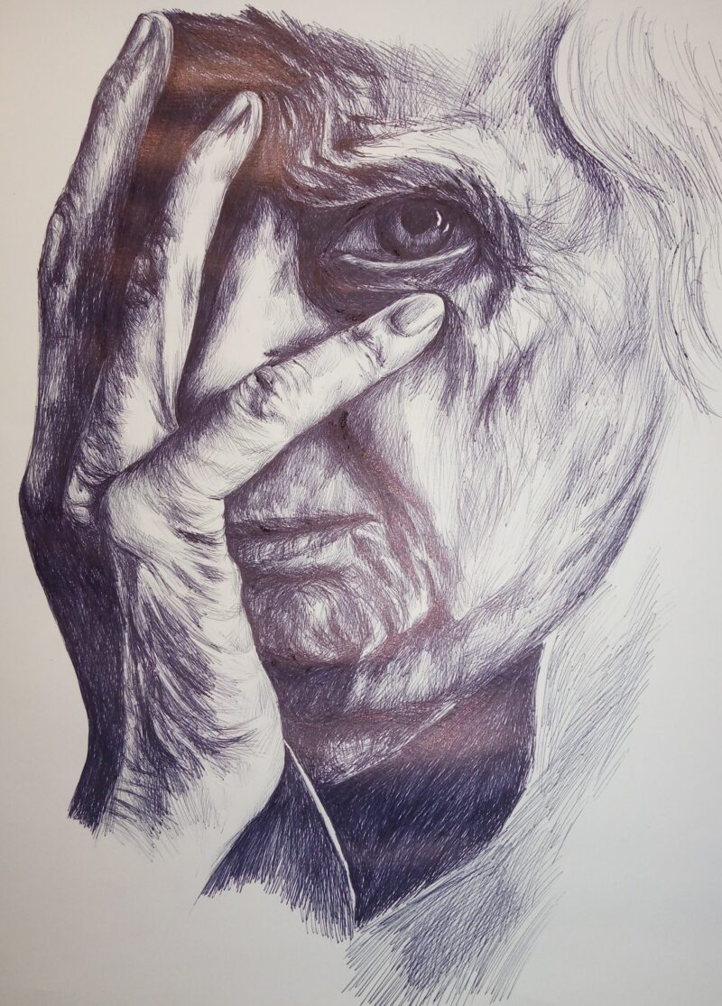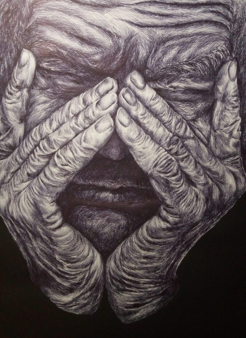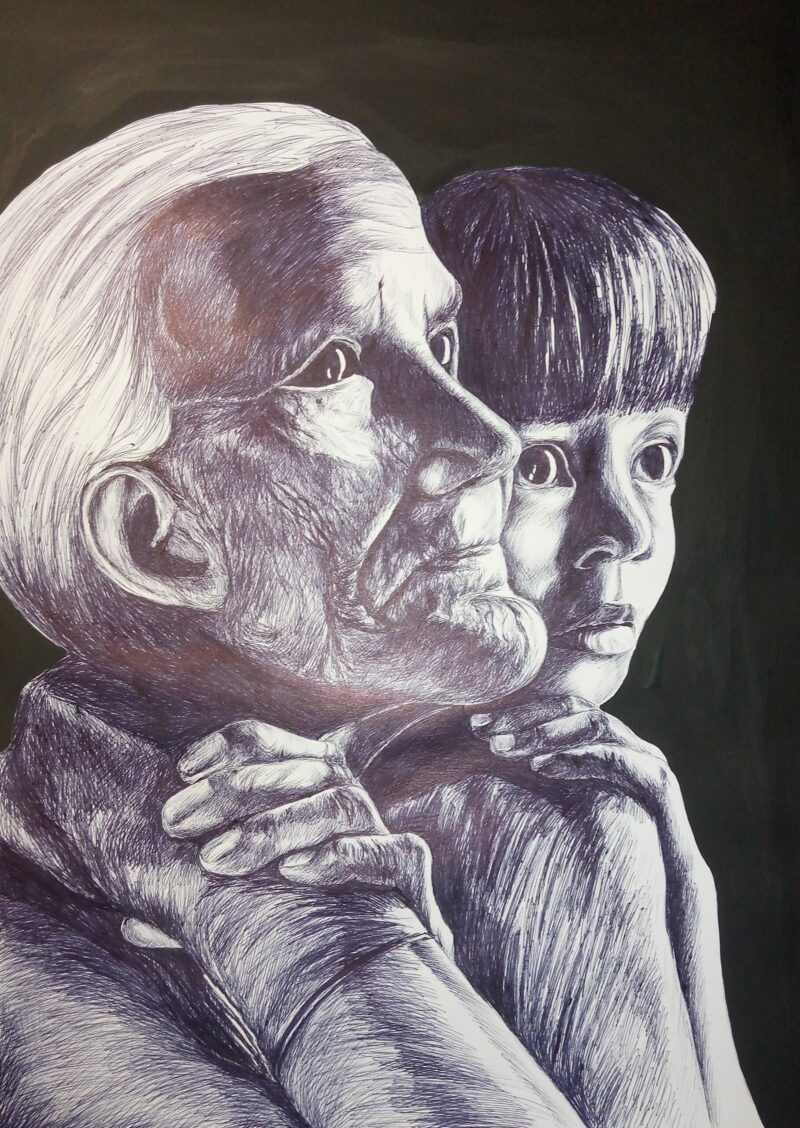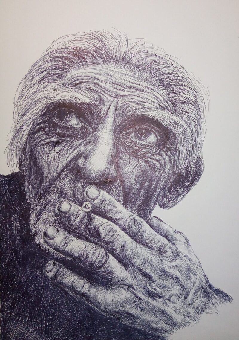 «З Херсона я не виїжджала ні зараз (під час обстрілів), ні при окупації рашистами, ні під час аварії на Каховській ГЕС — можна сказати, живий свідок усього, що переживало місто. Під час окупації головним правилом було не контактувати з рашистами будь-яким чином. Навколишня реальність із ”зетками” на херсонських дорогах була настільки дикою, що я рятувалась знов-таки мистецтвом. Виручила кулькова ручка: за той час почала створювати серії портретів гуцулів і видатних діячів української культури», — розповідає художниця.